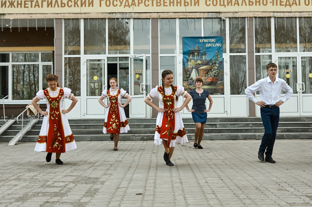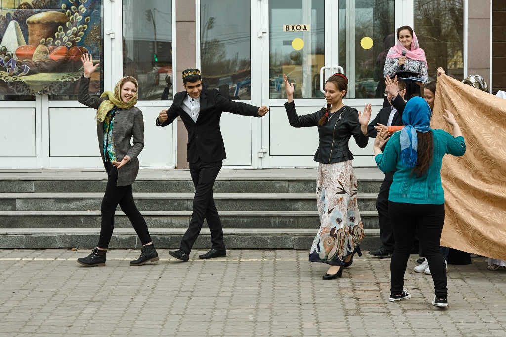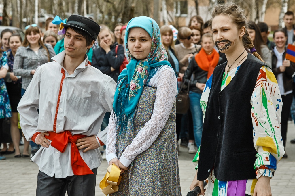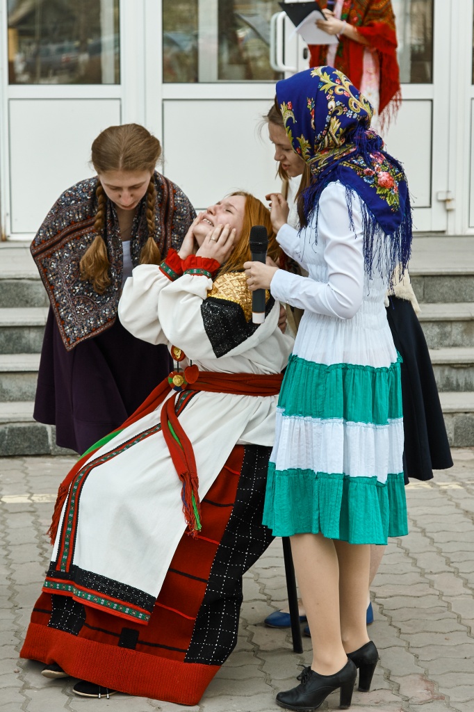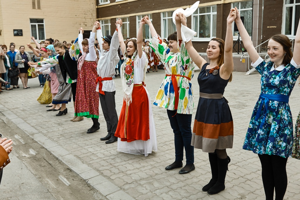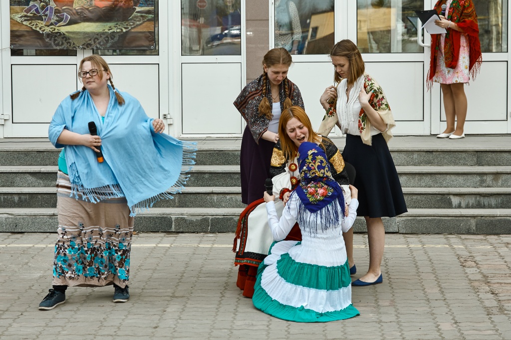 В 14:30 на главной площади института в завершение пасхального праздника состоялся конкурс, где факультеты представили национальные свадебные обряды казахов, белорусов, татар, украинцев, таджиков, азербайджанцев, Русскую свадьбу представили студенческие отряды – в не конкурса.