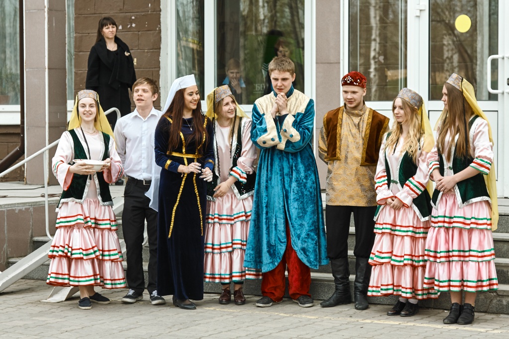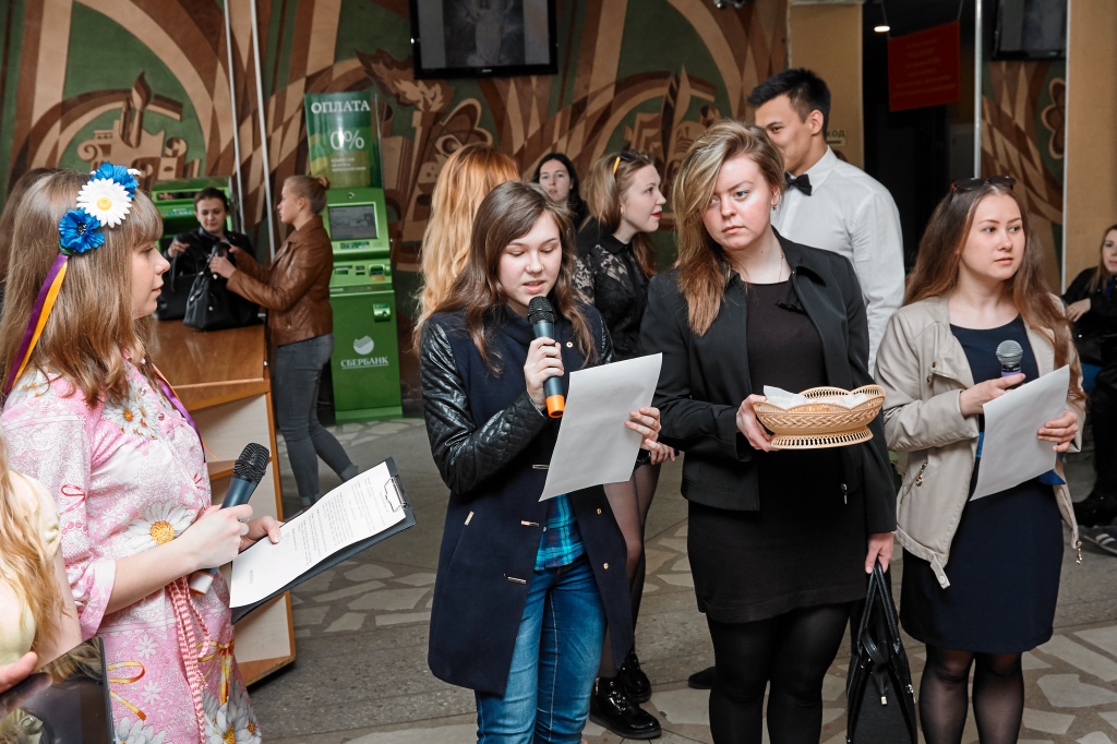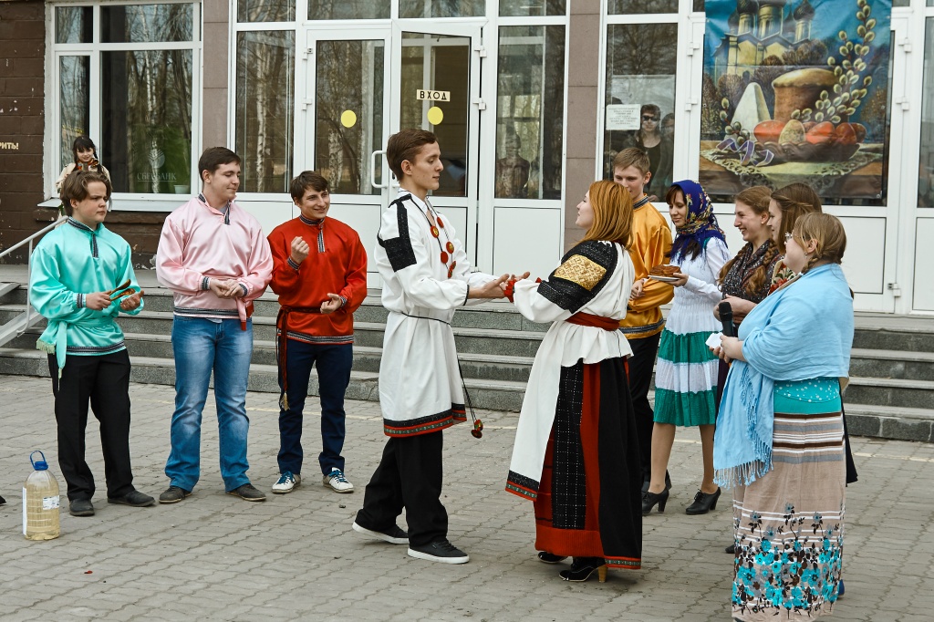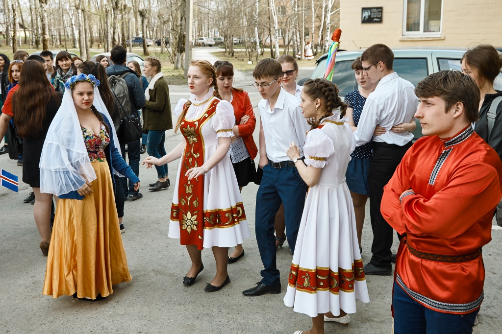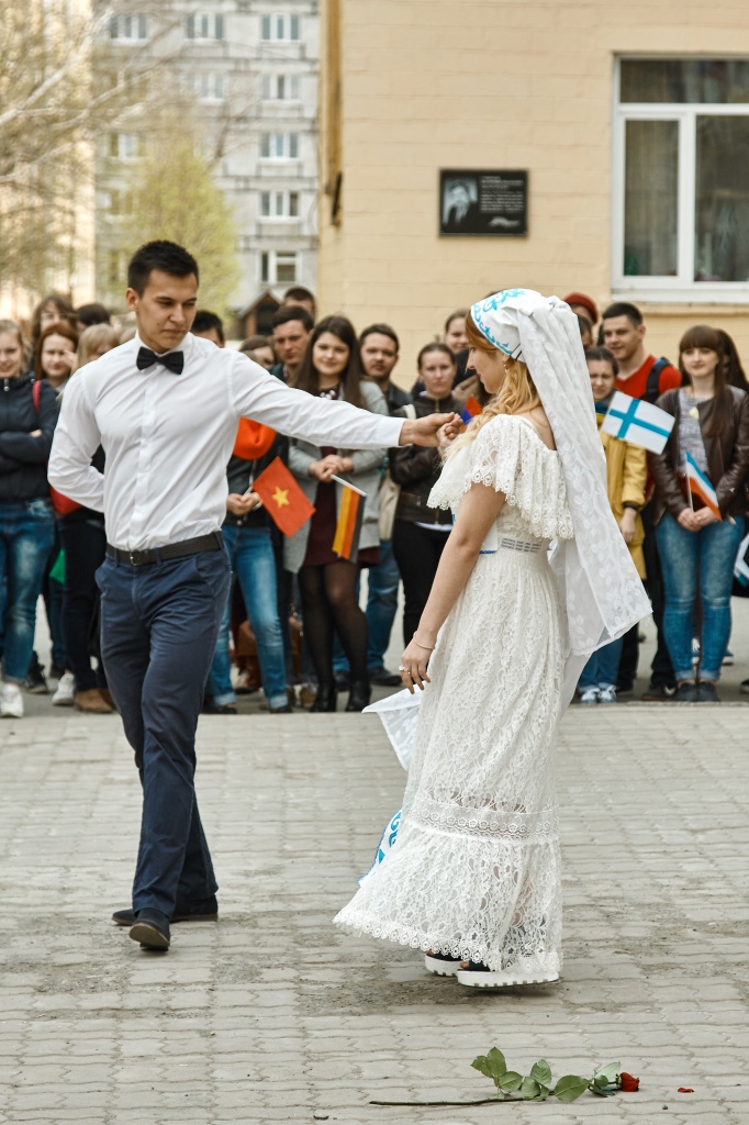 4 мая в институте прошел внутривузовский фестиваль-конкурс национальных свадебных обрядов в рамках мероприятий «Красная горка» и «Праздник национальных культур». С самого утра в главном холле института звучал колокольный звон, под национальные свадебные напевы всех приветствовали студенческие отряды вуза.