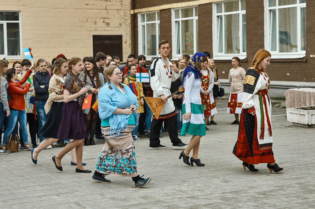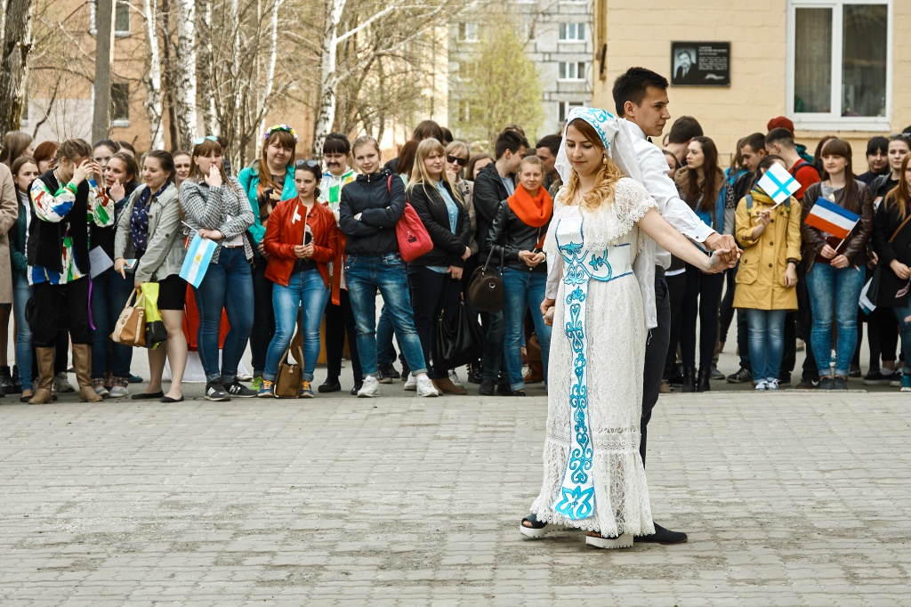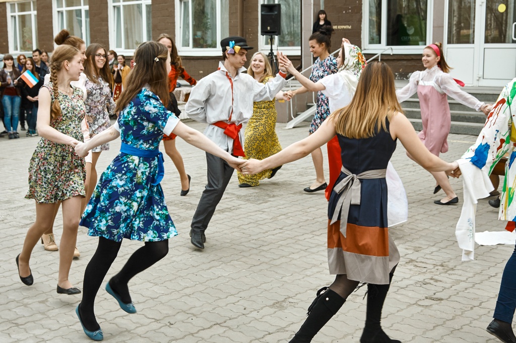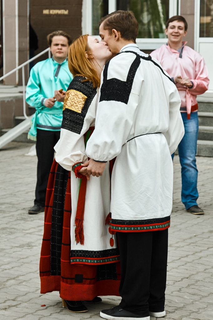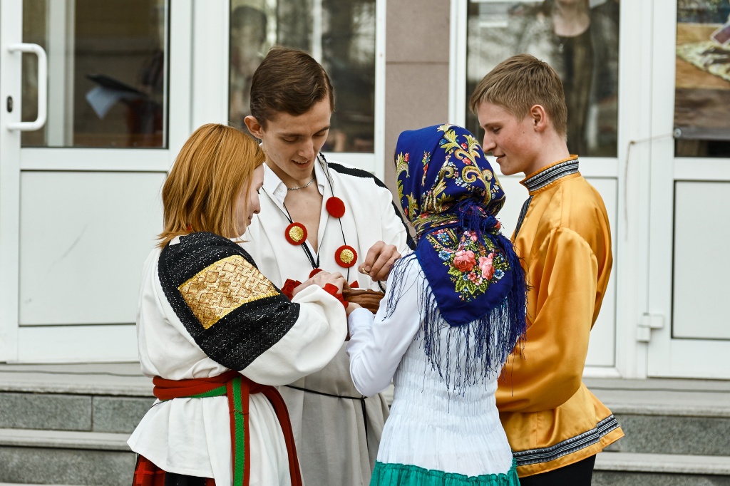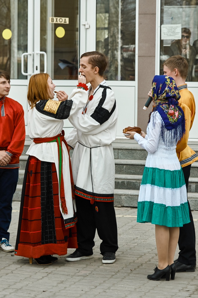 4 мая в институте прошел внутривузовский фестиваль-конкурс национальных свадебных обрядов в рамках мероприятий «Красная горка» и «Праздник национальных культур». С самого утра в главном холле института звучал колокольный звон, под национальные свадебные напевы всех приветствовали студенческие отряды вуза.
