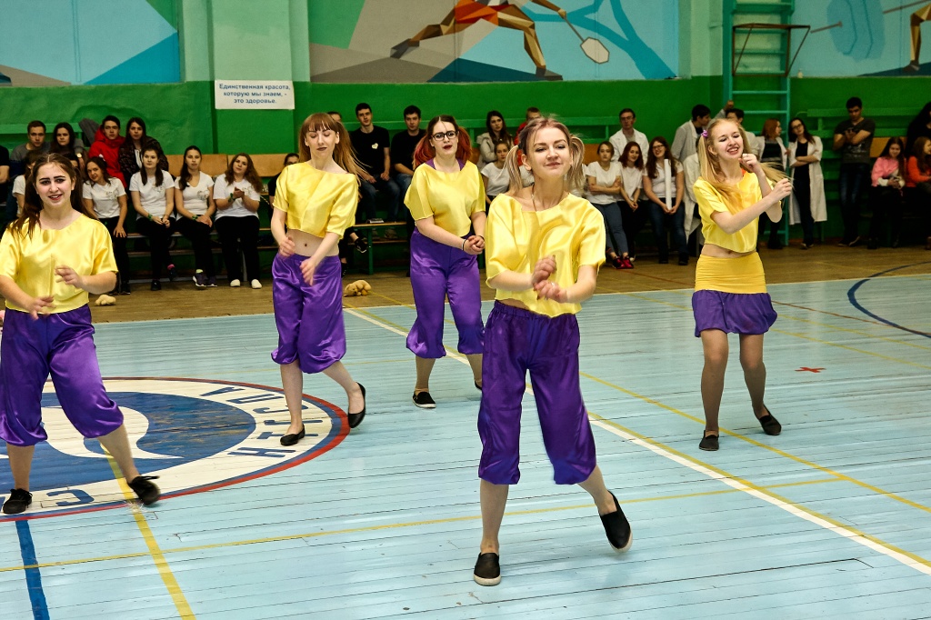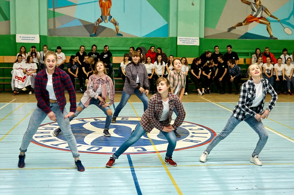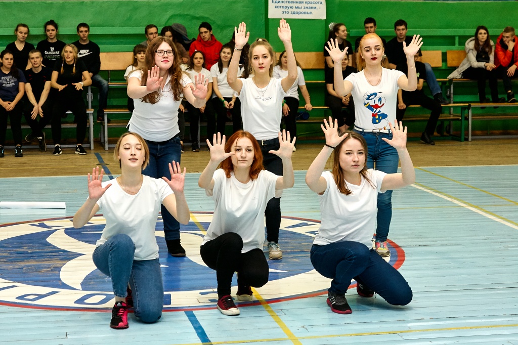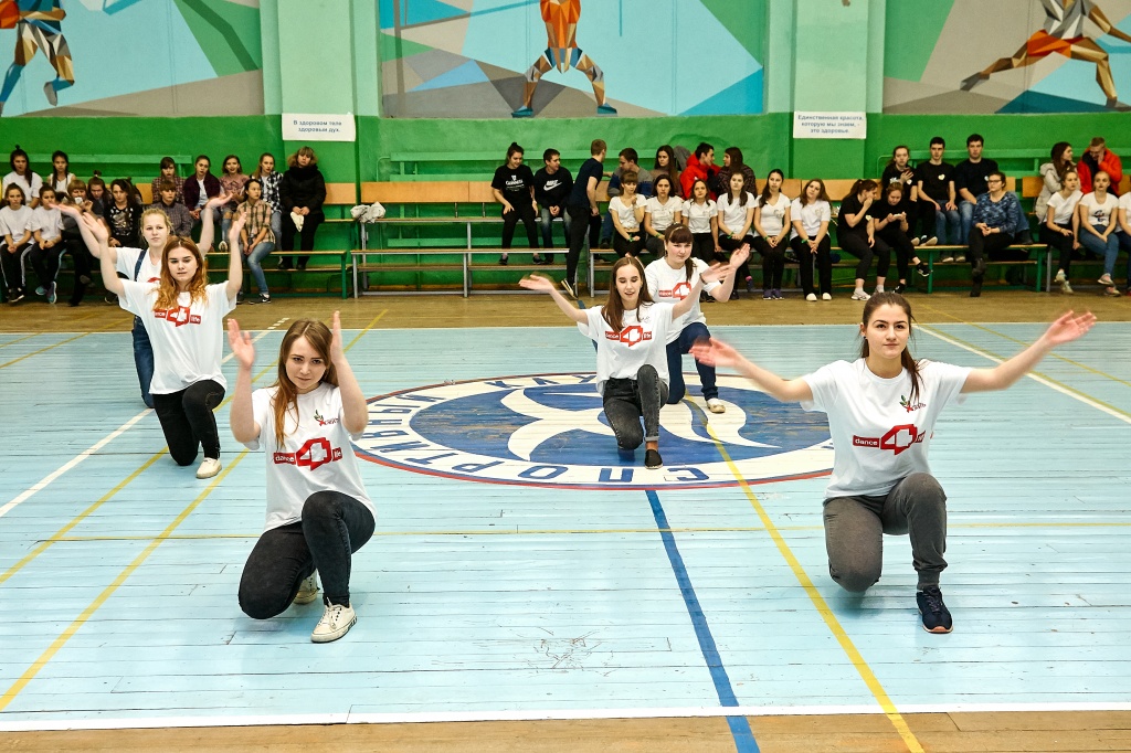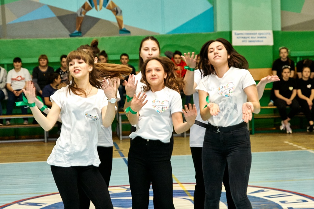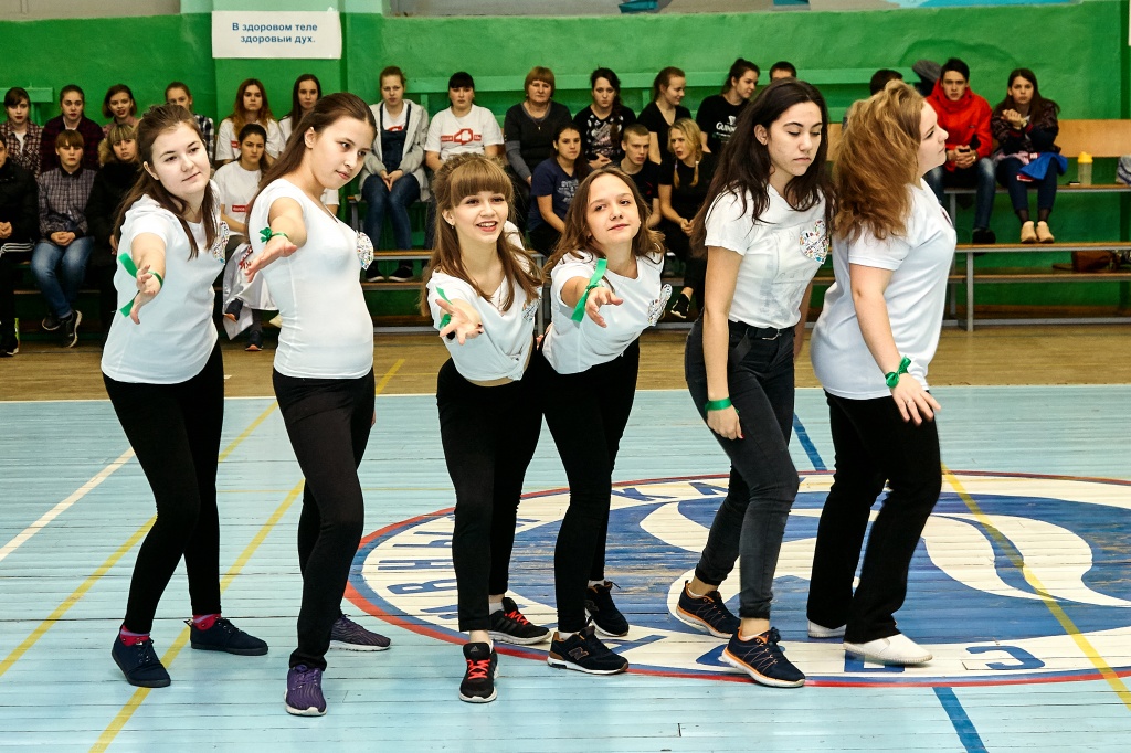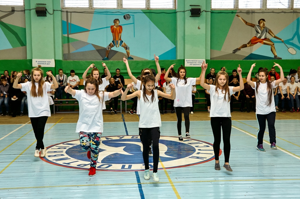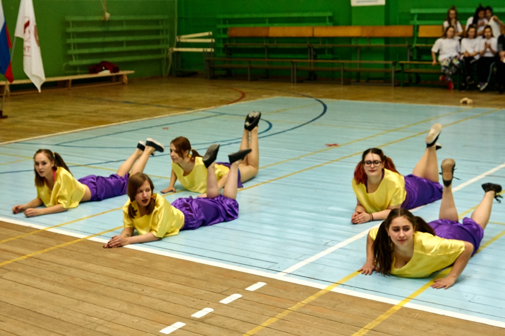 1-я часть – спортивно-оздоровительный танцевальный флэшмоб, который должны были представить команды-участники. Здесь оценивались и оригинальность идеи, и внешний вид участников, и синхронность исполнителей. Участники смогли удивить зрителей не только артистизмом, но и использованием в танцах разных акробатических приемов.