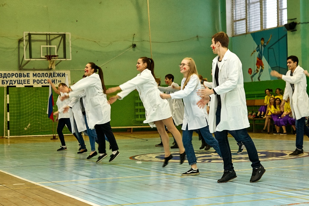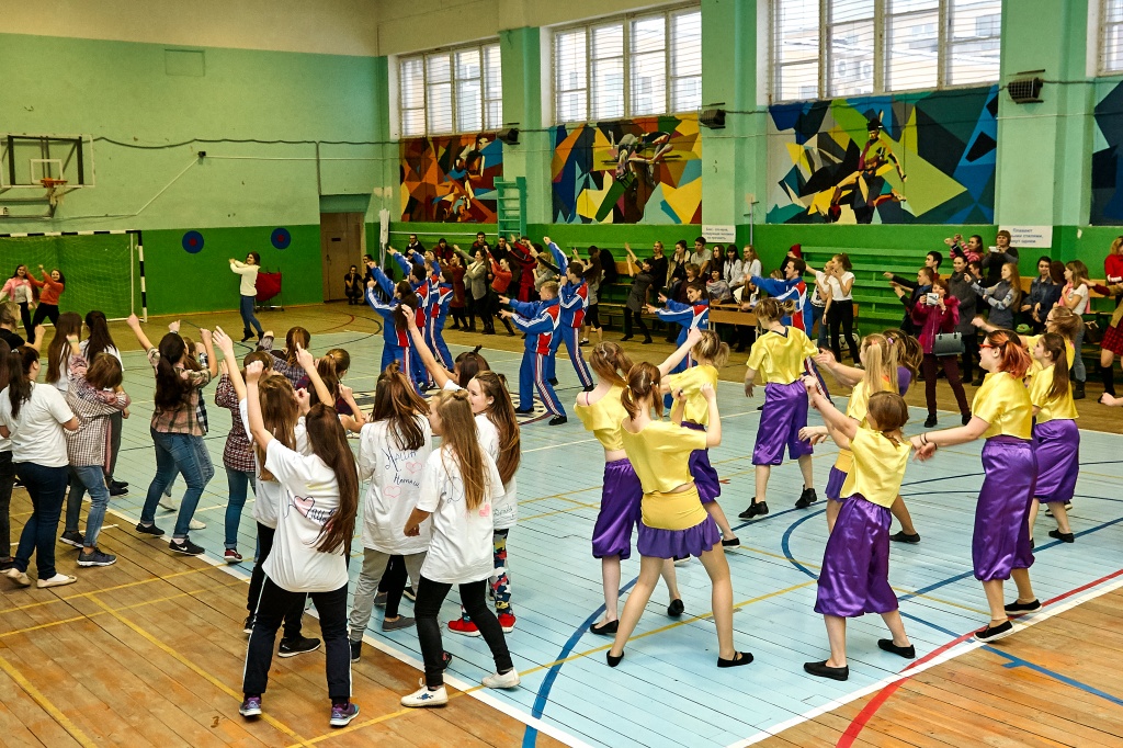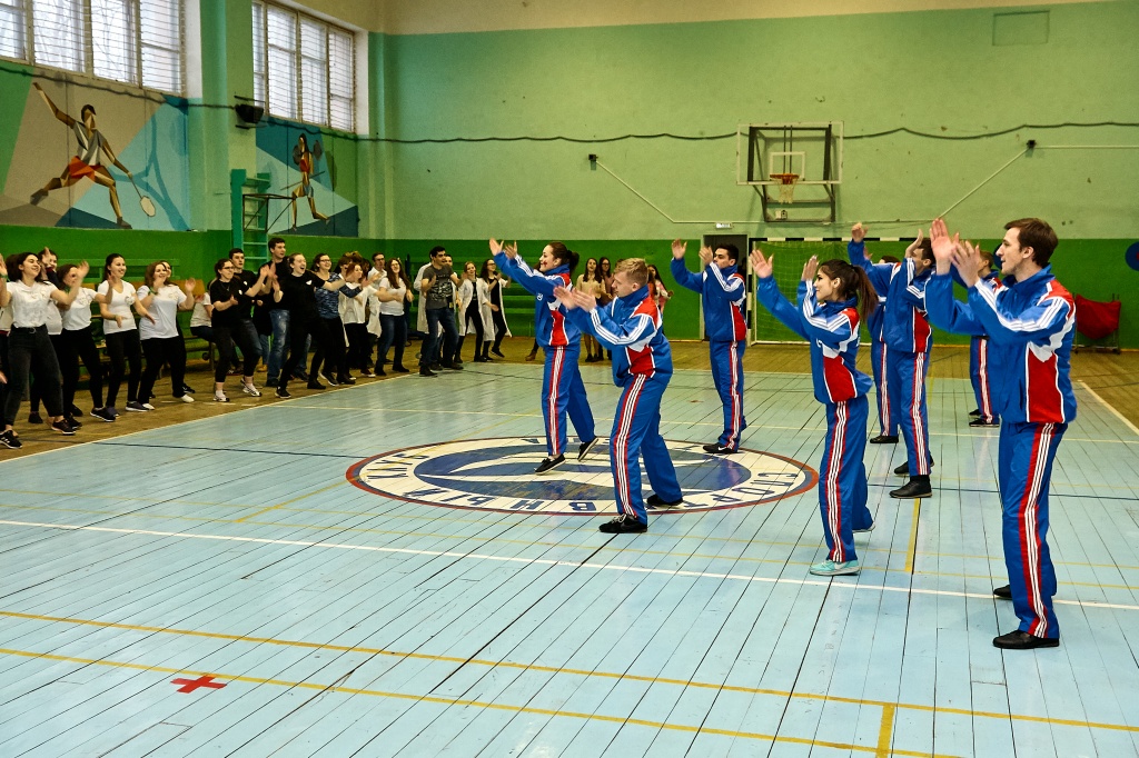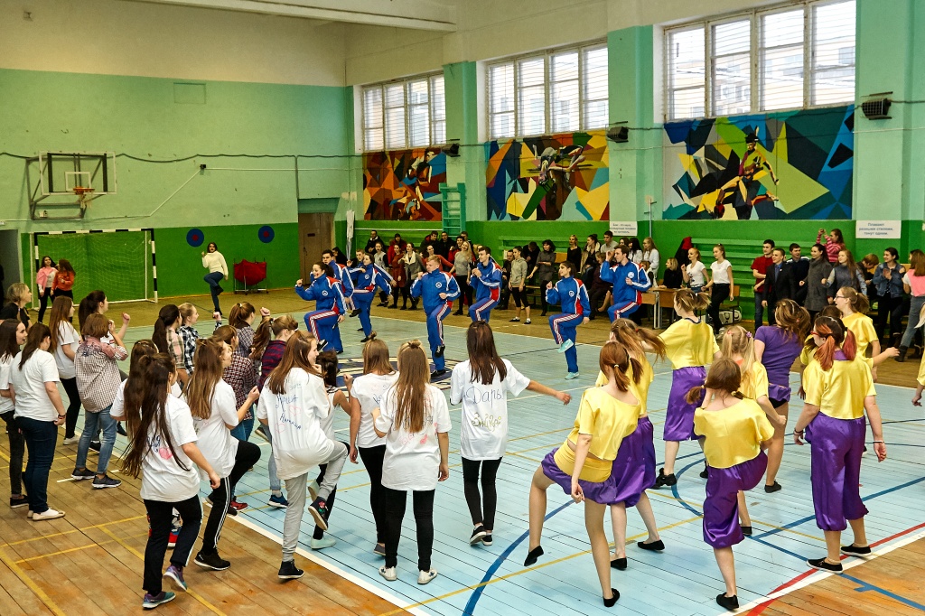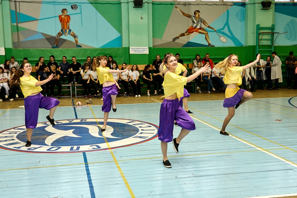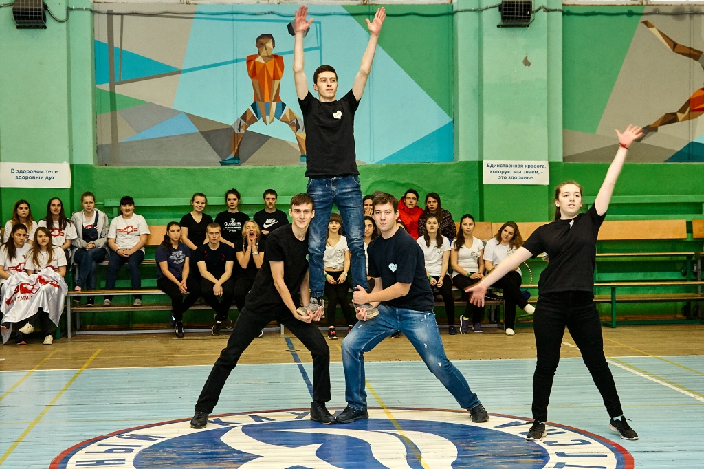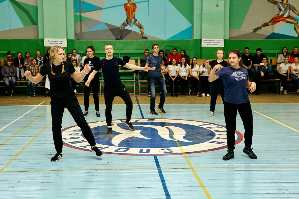 1-я часть – спортивно-оздоровительный танцевальный флэшмоб, который должны были представить команды-участники. Здесь оценивались и оригинальность идеи, и внешний вид участников, и синхронность исполнителей. Участники смогли удивить зрителей не только артистизмом, но и использованием в танцах разных акробатических приемов.