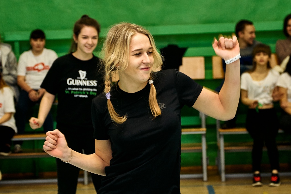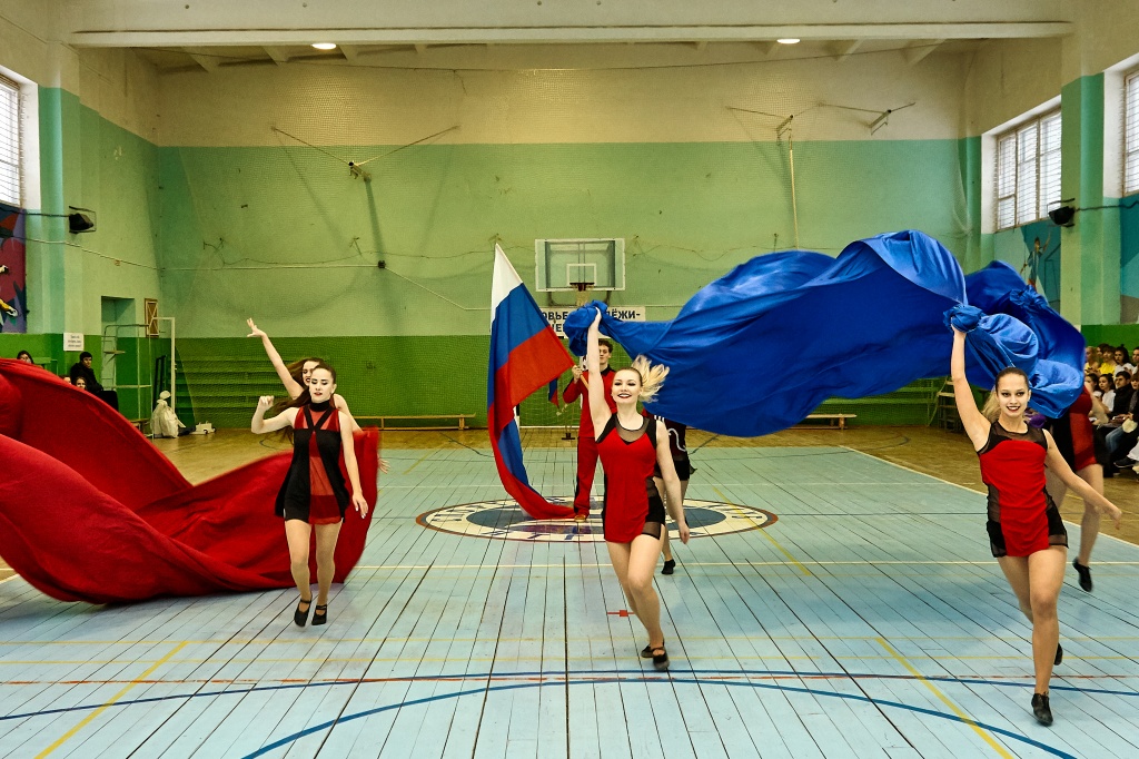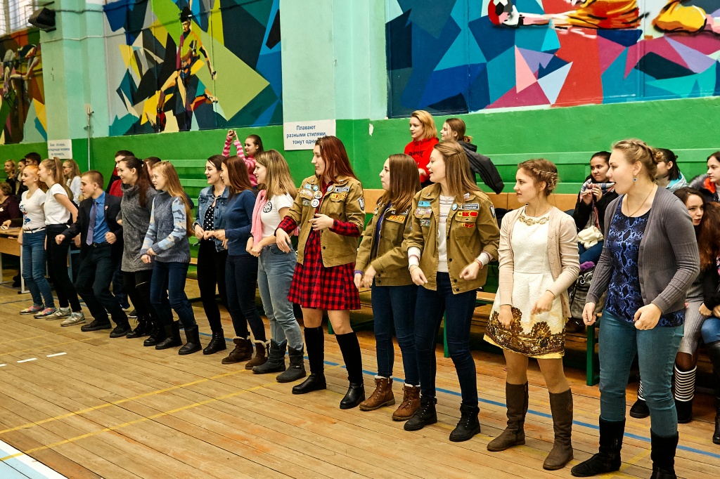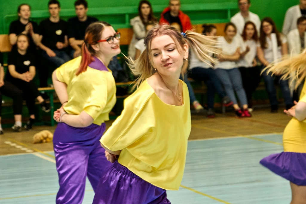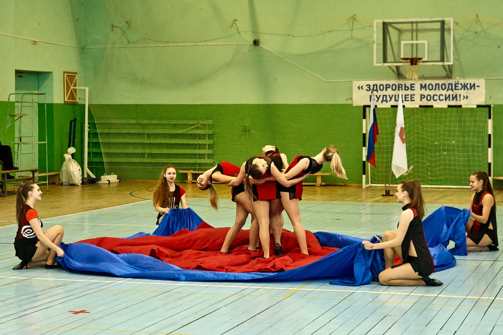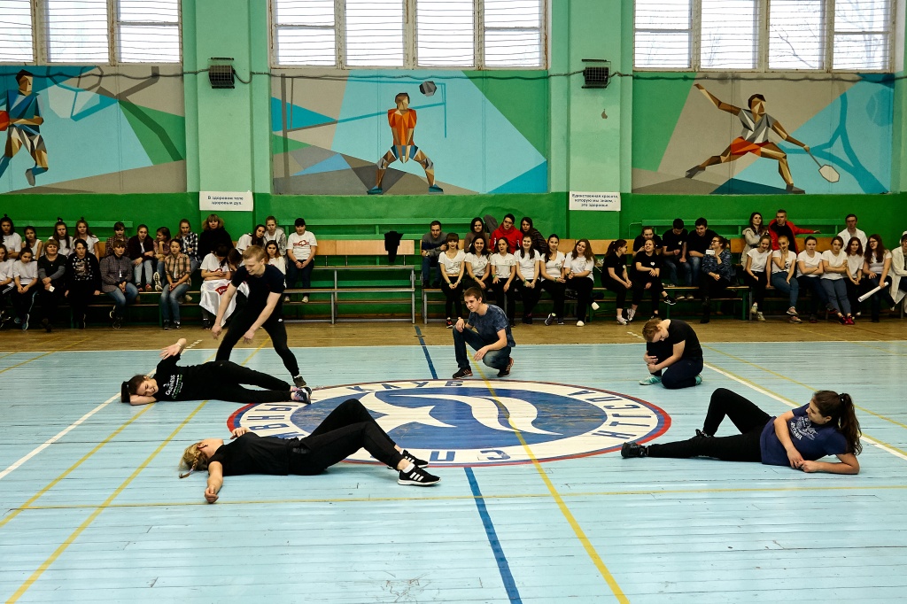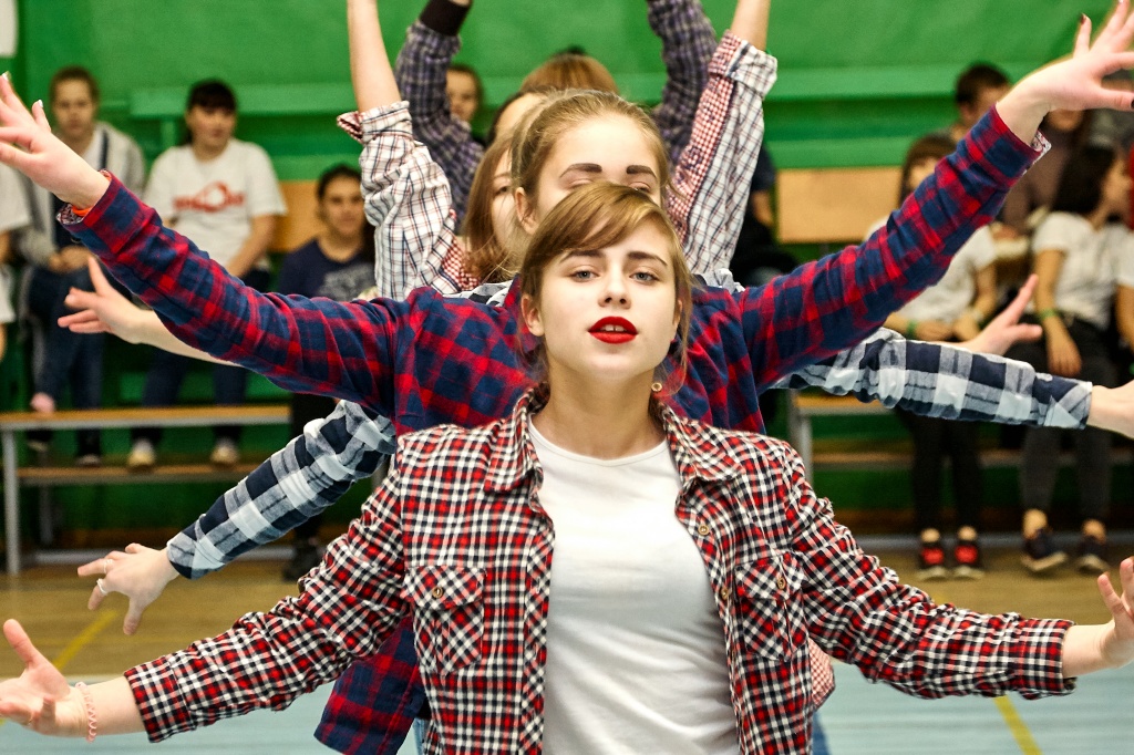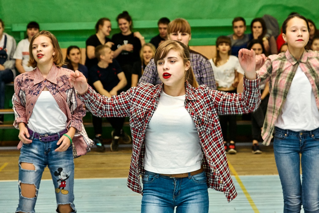 1-я часть – спортивно-оздоровительный танцевальный флэшмоб, который должны были представить команды-участники. Здесь оценивались и оригинальность идеи, и внешний вид участников, и синхронность исполнителей. Участники смогли удивить зрителей не только артистизмом, но и использованием в танцах разных акробатических приемов.