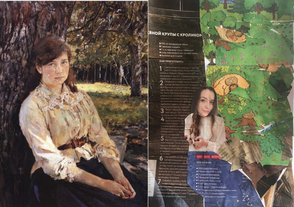 Своими впечатлениями о творческом задании делится Анна Ушакова: «Нам предстояло сделать метафорический портрет в технике коллаж. Должна признаться, это было сложно, но увлекательно: подобрать образ, в условиях самоизоляции найти, где распечатать свою фотографию и, конечно же, приняться за работу. Сначала кажется, что получается какая-то нелепица, но итоговый вариант работы действительно впечатляет! Именно на этих творческих парах лично я раскрыла в себе те возможности, о которых до поступления в вуз даже не предполагала».