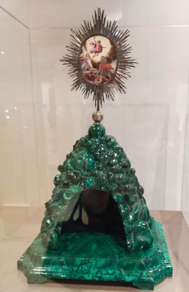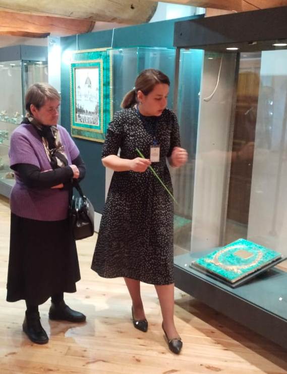 Ветераны и их внуки (многие пришли с внуками) услышали рассказ о способах добычи и освоения тагильских малахитовых недр, увидели предметы, изготовленные из малахита, познакомились с различной техникой обработки малахита, в том числе с техникой русской мозаики.