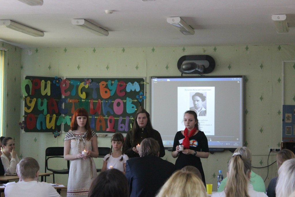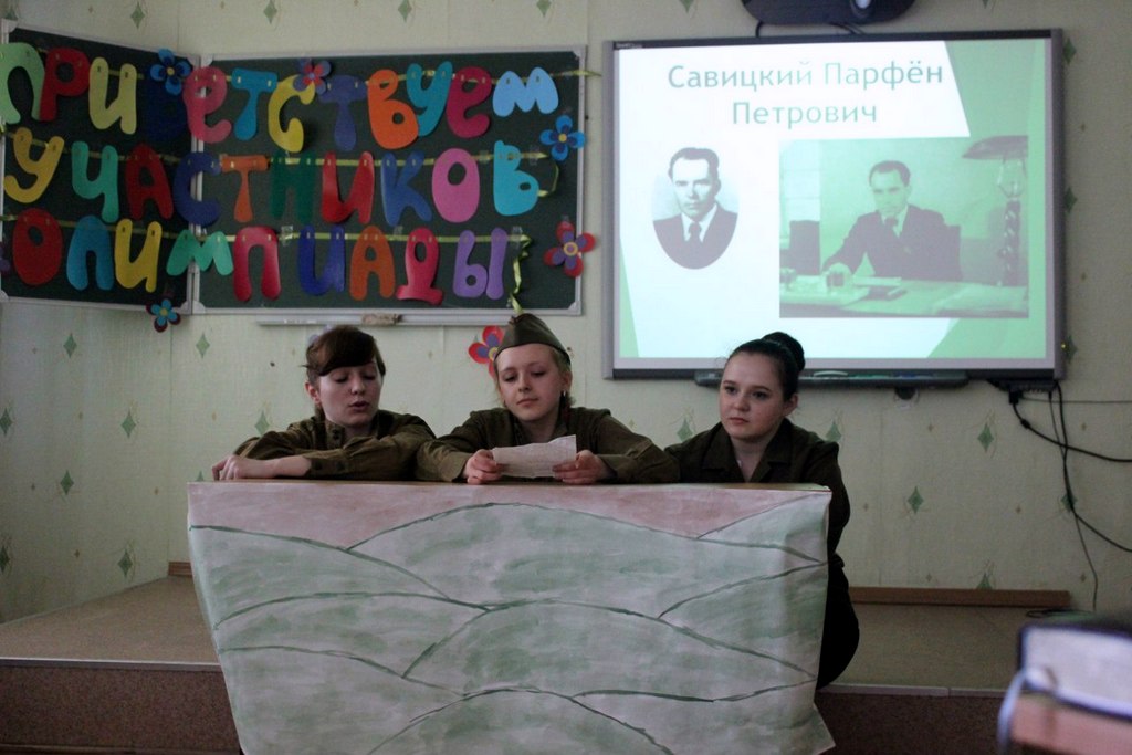 Торжественно открыла олимпиаду вокальная группа ФППО под руководством кандидата педагогических наук, доцента кафедры ПиПДиНО Трофимовой Елены Давидовны. Песни в исполнении вокальной группы помогли участникам олимпиады проникнуться атмосферой военных лет, вспомнить тех людей, которые защитили нашу Родину.