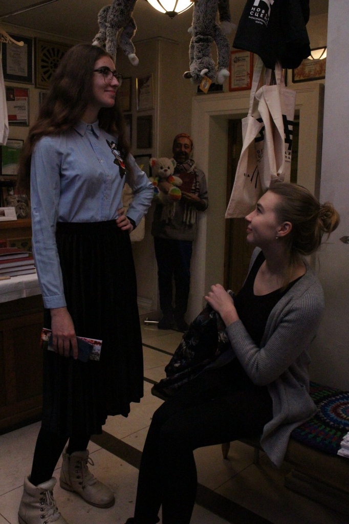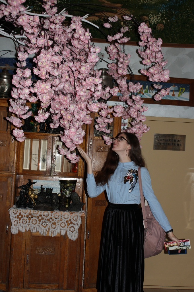 Яна Болотова: «Когда я зашла в театр, мое настроение и состояние моментально поменялось, у меня было такое чувство, что я попала в другой мир. Интерьер выстроен по-домашнему, было очень уютно находиться и в фойе, и в кафе. В театре много декораций, которые использовались во время спектаклей. Также я увидела много фотографий и портретов, где запечатлены актеры. Нашей группе удалось сфотографироваться с Николаем Владимировичем, замечательным человеком, от которого исходит нереальная энергия. Спектакль "Вишневый сад" мне понравился, интересно было наблюдать за игрой актеров, сюжет был захватывающим. Я получила массу положительных эмоций. Спасибо преподавателям и одногруппникам за поездку, за приятно проведенное время».