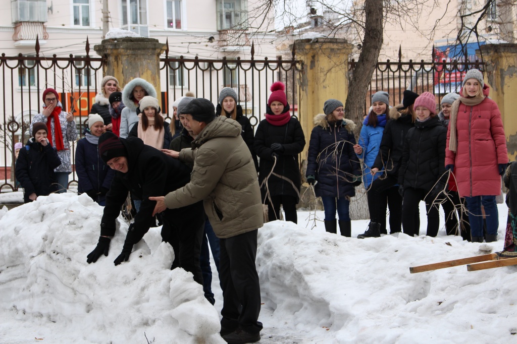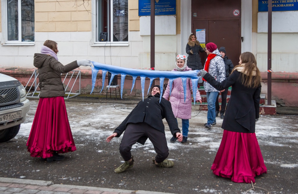 Снежный макет городка "собран" студентами-художниками, творческая реализация выполнена студентами-театралами и музыкантами!