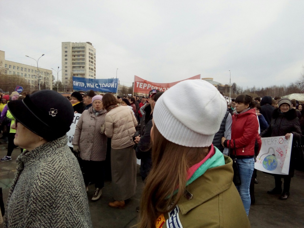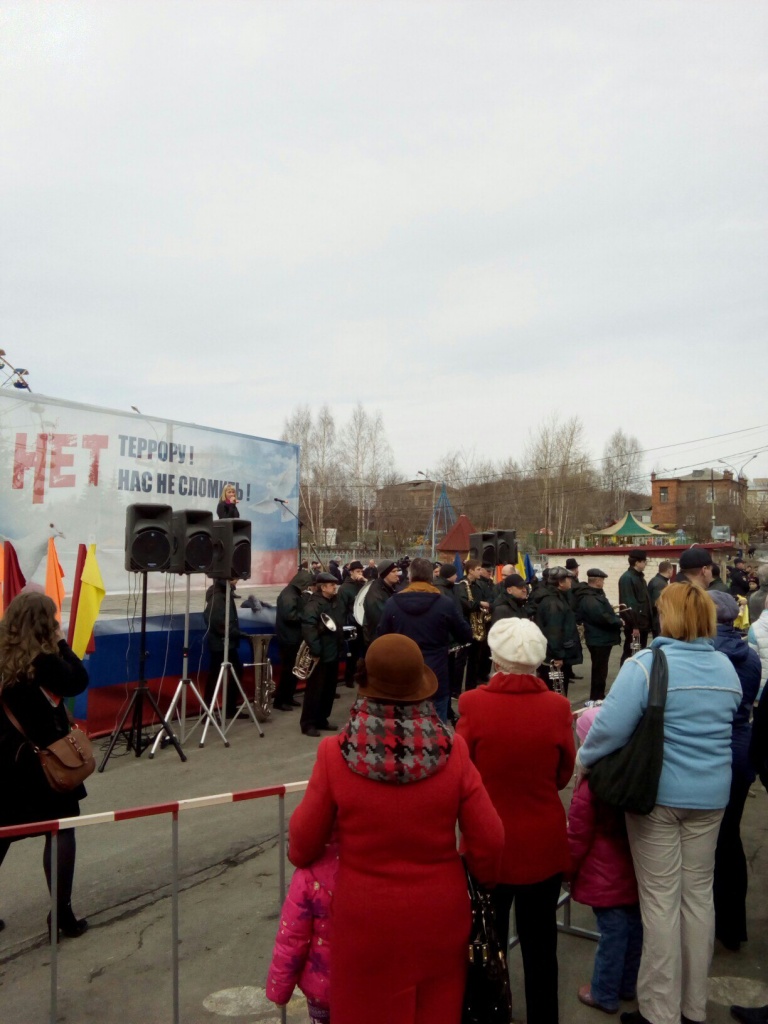 8 апреля в нашем городе на территории парка культуры и отдыха имени А. П. Бондина состоялся митинг «Вместе против террора». Сотни людей собрались здесь, чтобы выразить свое негативное отношение к терроризму, говорить о мире, согласии и объединении граждан нашей страны. На митинге было большое количество молодежи, многие молодые люди пришли в парк с плакатами, что говорило об их неравнодушии к случившейся трагедии Студенты, преподаватели и администрация Нижнетагильского государственного социально-педагогического института тоже не остались в стороне.