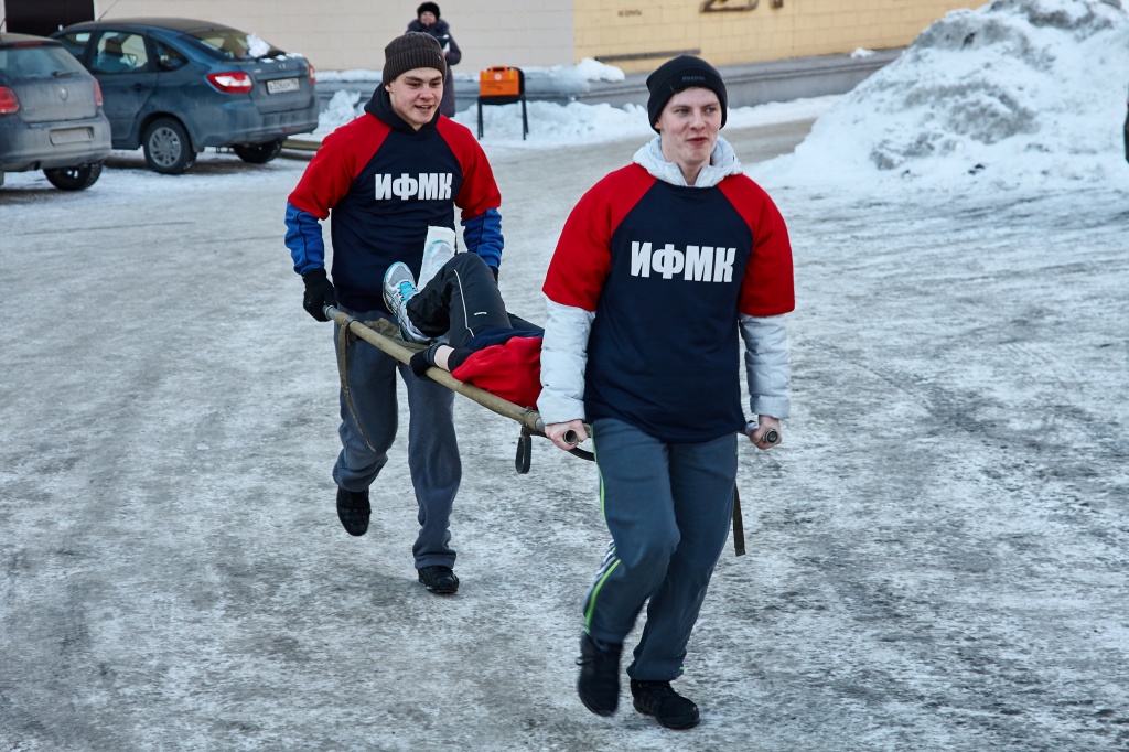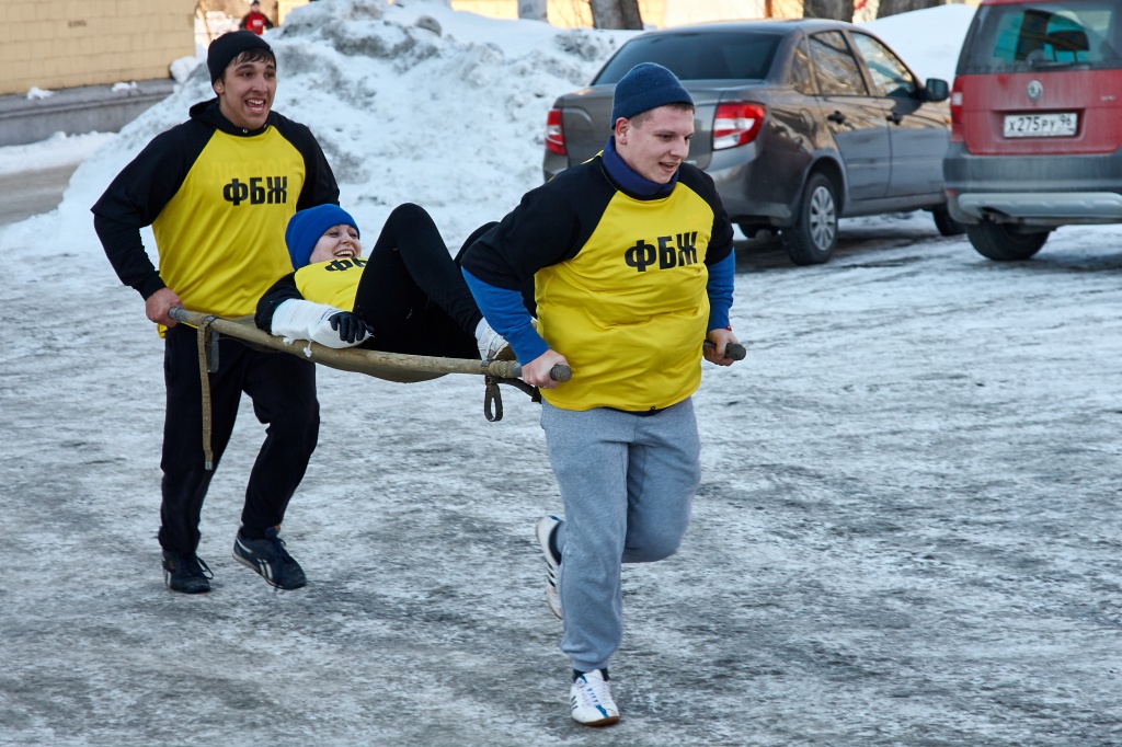 19 февраля 2016 года на территории НТГСПИ(ф) РГППУ проходила традиционная военизированная эстафета, посвященная Дню защитника Отечества. В соревнованиях приняли участие восемь команд: сборные команды факультетов института (2 юноши, 2 девушки) и наши гости – две команды, представляющие Уральский государственный университет путей сообщения (филиал в г. Нижний Тагил). Военизированная эстафета состояла из следующих этапов: стрельба из пневматической винтовки, метание гранаты в цель, преодоление полосы препятствий, исполнение хором военизированной песни, определение азимута, сборка и разборка автомата, преодоление веревочного этапа. Завершал эстафету этап – оказание первой медицинской помощи и транспортировка пострадавшего.