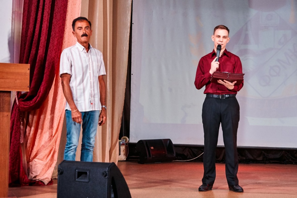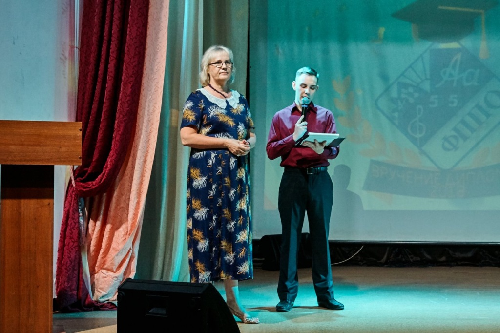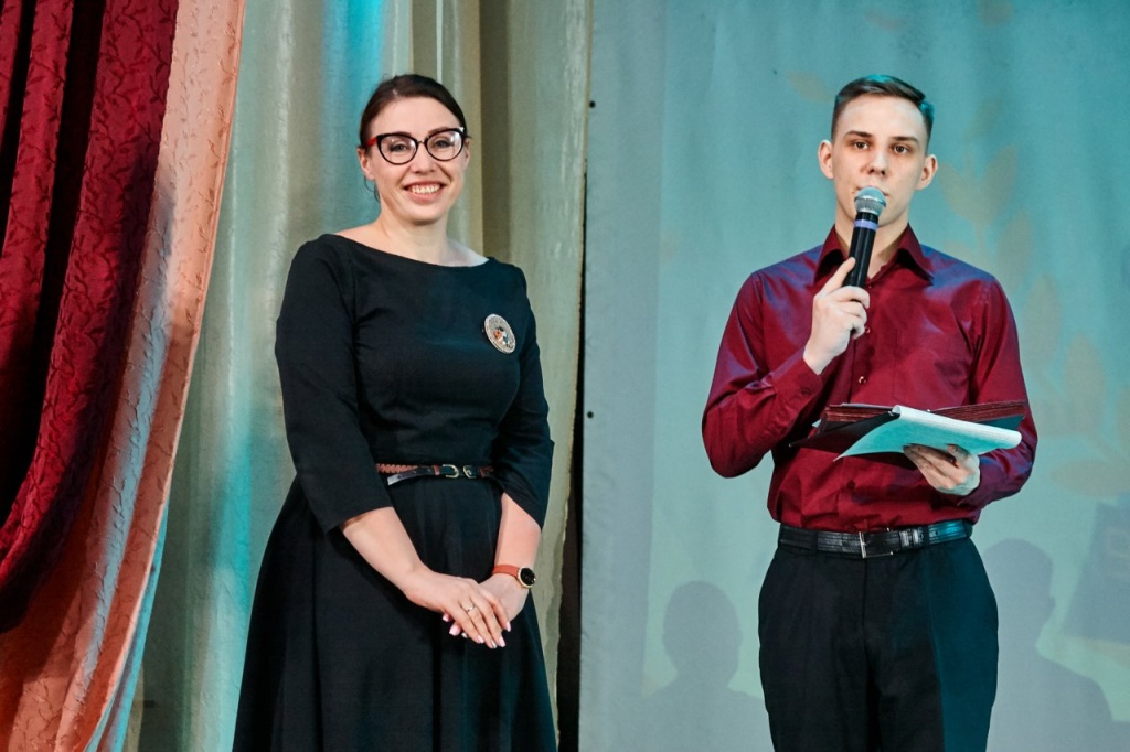 Вели праздничное мероприятие выпускники 2016 и 2017 года Ульяна Савина (Подлесных) и Михаил Козин.