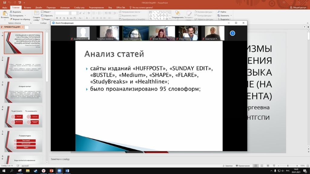 28 января 2022 г. на факультете филологии и межкультурной коммуникации состоялась ежегодная научно-практическая конференция «Актуальные проблемы изучения и преподавания филологических дисциплин в школе и вузе». Впервые традиционное научное мероприятие ФФМК прошло в очно-дистанционном формате: педагоги из Нижнего Тагила работали на пленарном и секционных заседаниях в конференц-зале и аудиториях НТГСПИ (филиала) РГППУ; преподаватели, студенты, учителя иностранных языков, русского языка и литературы из других городов и регионов РФ выступили с докладами в режиме зум-конференции. Всего в конференции зарегистрировалось 114 участников. Спикеры из Москвы, Санкт-Петербурга, Республики Крым, Республики Мари Эл, Республики Татарстан, Свердловской, Челябинской, Иркутской, Нижегородской областей представили свои варианты решения актуальных проблем филологии и методики преподавания филологических дисциплин.