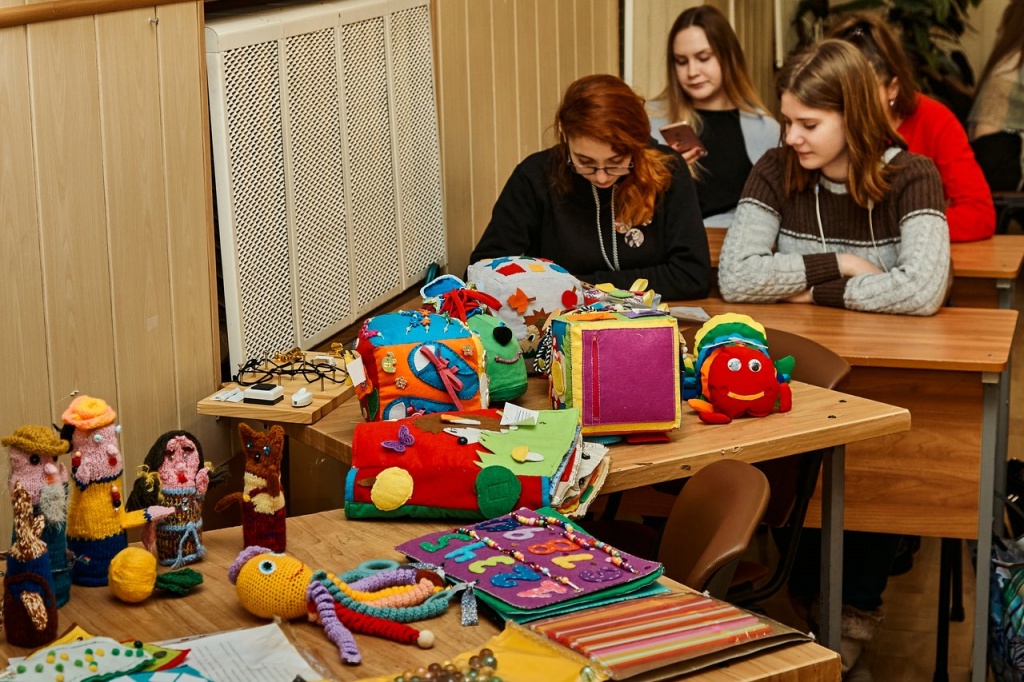 Участники конференции могли ознакомиться с творческими работами студентов ФППО, представляющими интерес необычностью решения задач развития творческого мышления дошкольников и младших школьников, возможностью изготовления оборудования для проведения коррекционно-развивающей работы с детьми, имеющими проблемы психофизического развития.