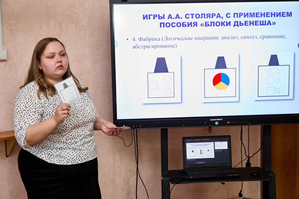 Мастер-класс от воспитателя МБДОУ Детский сад комбинированного вида № 24 «Сказка», пгт. Горноуральский, Горноуральского городского округа Д. А. Кайгородовой «„Клетка в кубе” как средство индивидуализации дошкольного образования» вызвал интерес и позитивные отзывы участников конференции из-за простоты идеи и многофункциональности использования простого игрового предмета – кубика.