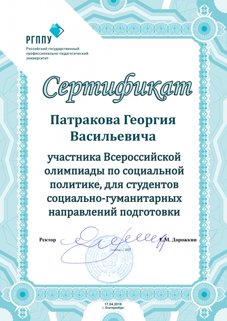 10–14 апреля 2018 г. на базе РГППУ прошла Всероссийская студенческая олимпиада по социальной политике, посвященная 25-летию социальной работы в России, для студентов социально-гуманитарных направлений подготовки.