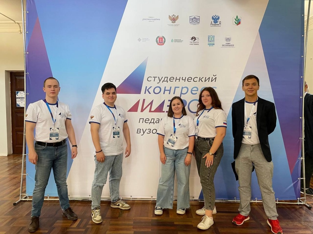 С 13 по 15 сентября в Волгоградском государственном социально-педагогическом университете состоялся Всероссийский студенческий конгресс лидеров педагогических вузов России – 2023 «Педагог – проводник в будущее страны», в котором приняли участие более 30 педагогических вузов, более 300 участников со всей нашей страны. Было презентовано пять образовательных площадок: «Современные вызовы воспитания», «Из педагогического класса – в педагогическую профессию», «Учитель в новых медиа», «Наставничество – инструмент взаимодействия», «Современный родитель глазами студентов». Наш институт представляли пять студентов: Михаил Разуваев (ФЕМИ), Данил Попов (СГФ), Анастасия Баклыкова (ФППО), Александр Марамзин и Валерия Быкова (ФХО).