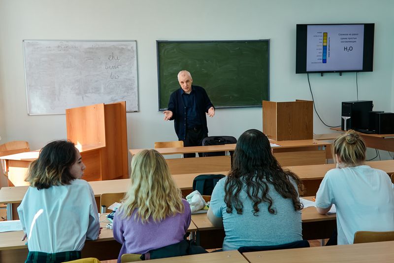 26 мая в рамках деловой программы WorldSkills доктор филологических наук Эдуард Владимирович Будаев провел на факультете филологии и межкультурной коммуникации открытую лекцию «Введение в когнитивную науку». Он рассказал простым языком о сложном: что изучает когнитивная наука и как именно. С помощью интересных и понятных примеров слушателям была объяснена разница объекта и предмета науки в целом и конкретно когнитивистики, а также описана методология когнитивной науки. Студенты 3 курса направлений «Английский язык и французский язык» и «Английский язык и начальное образование» выявили определение термина «знание» с точки зрения когнитивистского понимания, а также узнали про когницию и ее различные свойства.