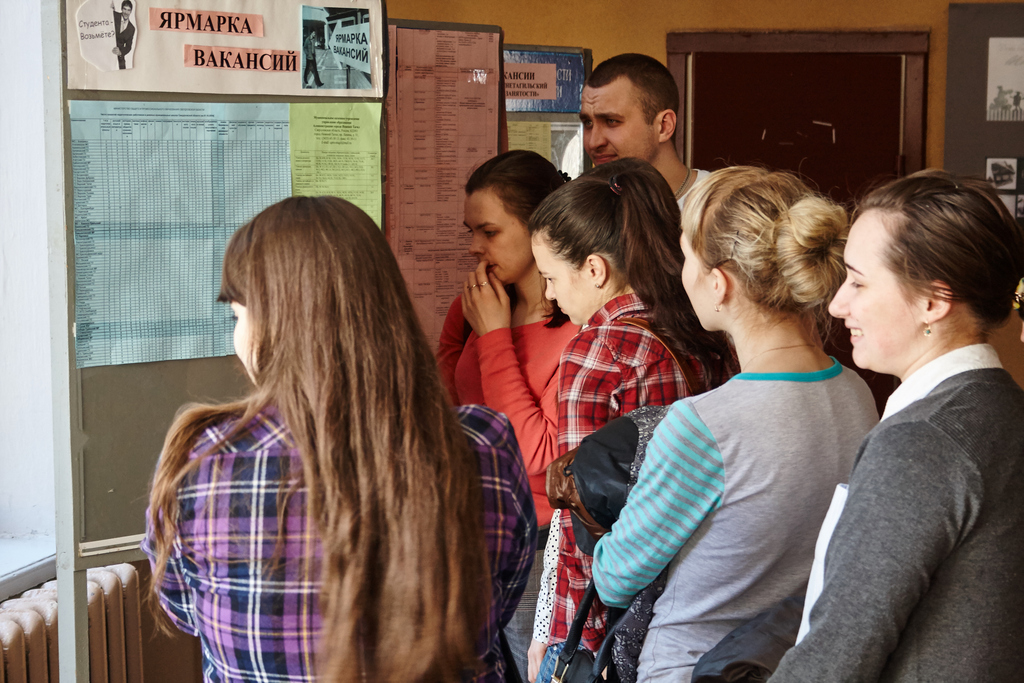 Но современные выпускники вправе выбрать для себя разные варианты трудоустройства. Поэтому на ярмарке были представлены вакансии в сфере торговли, финансовых и прочих услуг: специалист по продажам кредитных продуктов, маркетолог, менеджер по рекламе, дизайнер, менеджер проектов, видеодизайнер.