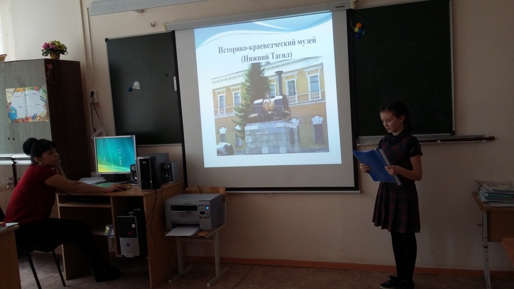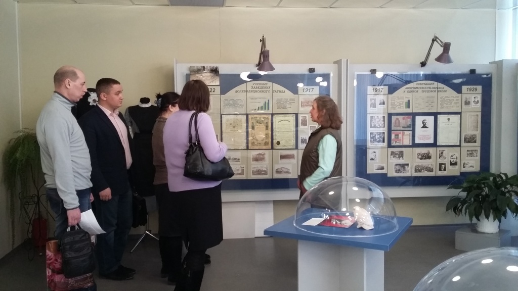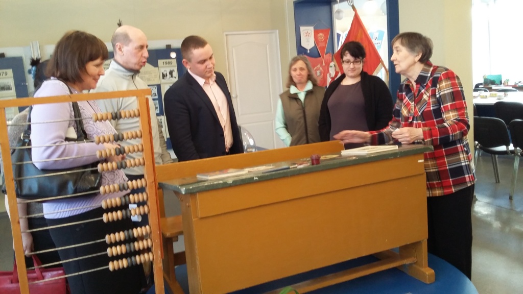 Далее разговор о проектной деятельности переместился в пространство школьного музея «История образования в г. Нижний Тагил». Экскурсию по экспозиции провела О. П. Воропаева, выпускница первого выпуска исторического факультета НТГСПИ. А затем за чашечкой чая педагог-организатор М.Р. Базарова рассказала о том, как за полвека школьный музей стал не только центром воспитательной, исследовательской деятельности учащихся, но и центром социального партнерства и творческой активности горожан.