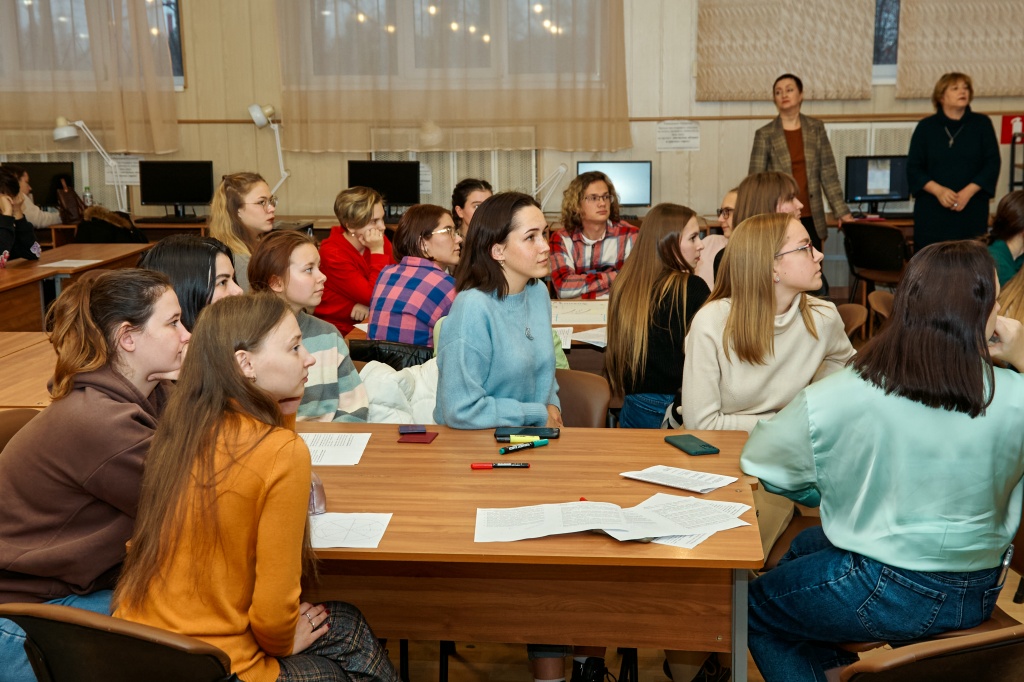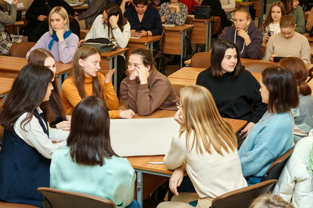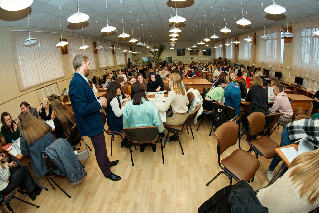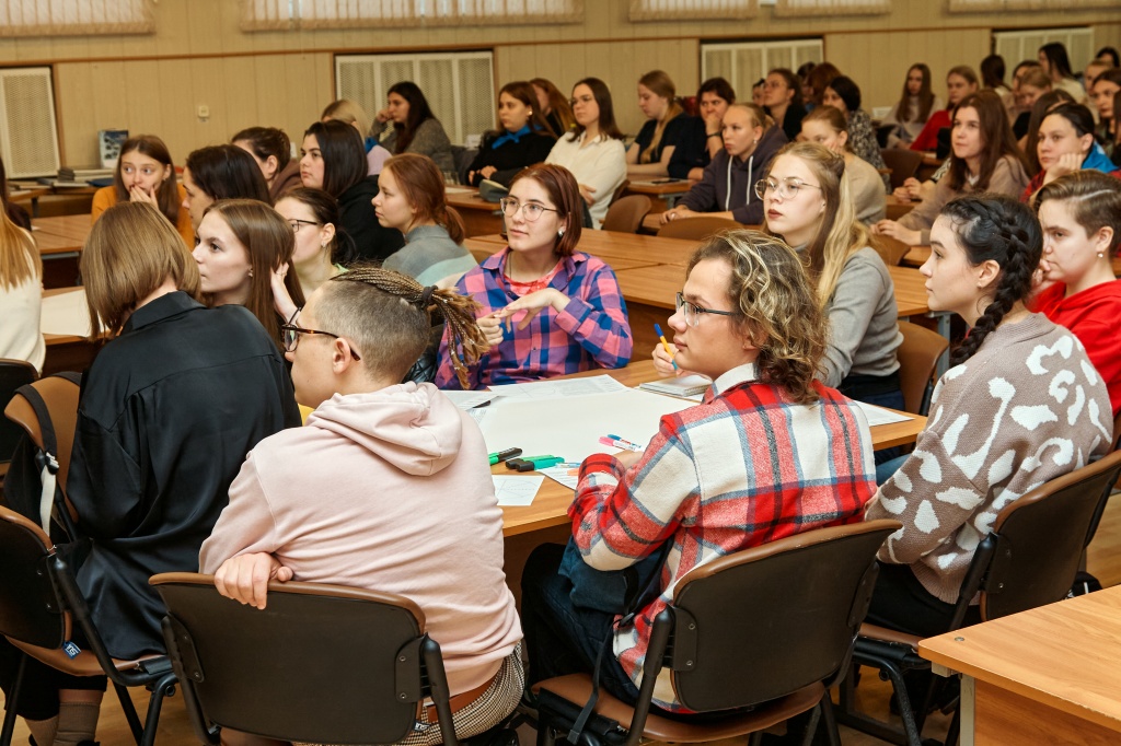 Деятельность студентов младших курсов проходила под руководством С.С. Луткина. Ребятам предстояло ответить на определенные вопросы и составить карту профессионально значимых качеств будущих педагогов и психологов.