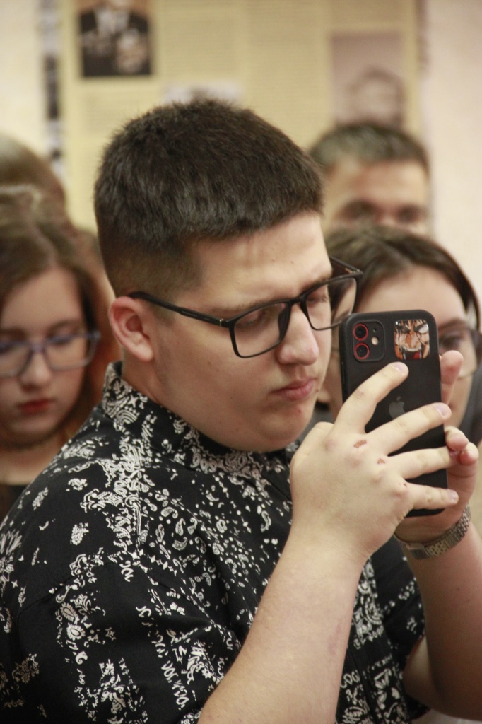 Экскурсию по выставке подготовили и провели студенты СГФ Полина Стафеева (Нт-301о ИПУП), Елизавета Кузьминых (Нт-202о ИОПМ), Даниил Горбов (Нт-201о ИОПМ) под руководством зав. музеем Елены Александровны Казаковой.