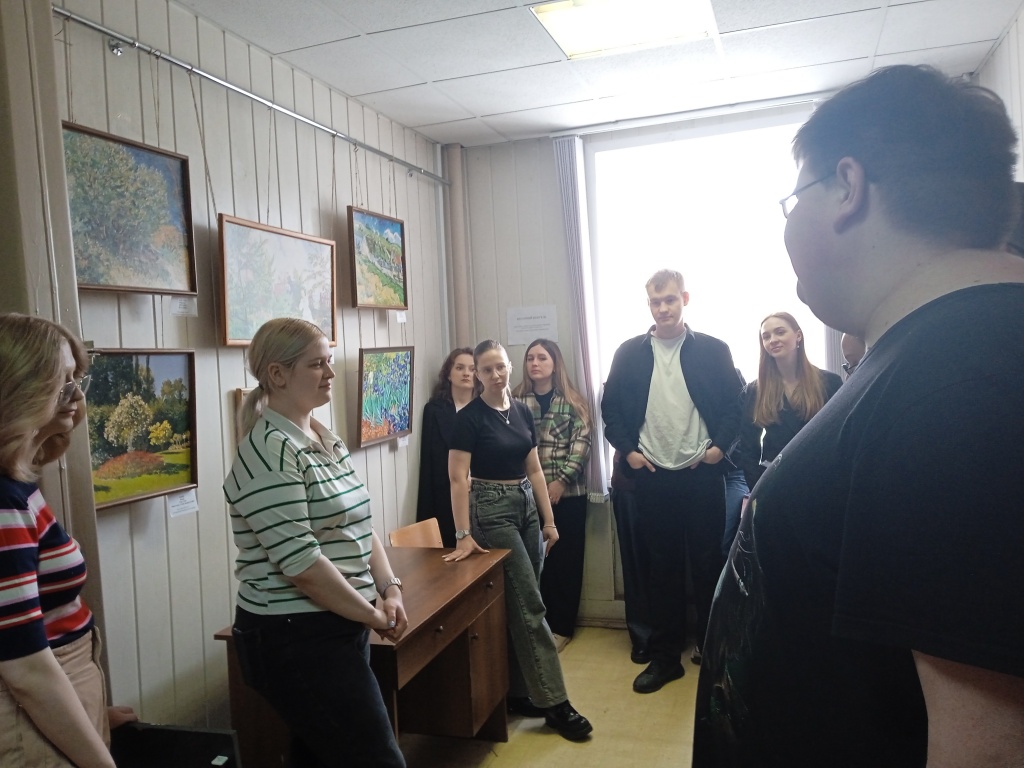 30 апреля в НТГСПИ состоялось открытие выставки «Весенний калейдоскоп». Студентам удалось окунуться в волшебный мир весны, увиденный глазами великих импрессионистов. Удивительные миры на полотнах Ван Гога, Моне, Рериха и многих других открылись студентам со стен музейного пространства. В общей сложности двадцать картин и одна фотография с эффектом Кирлиана уютно разместились на первом этаже социально-гуманитарного факультета. Все они по-разному рассказывают через призму авторского восприятия о многогранности и разнообразии весенних пейзажей.
