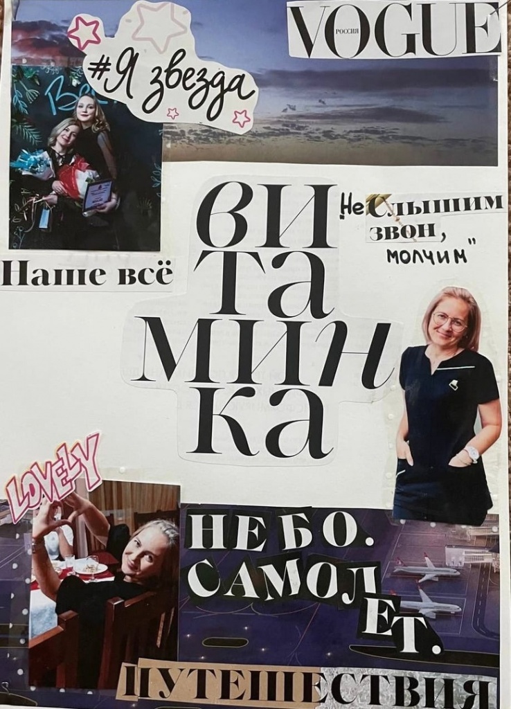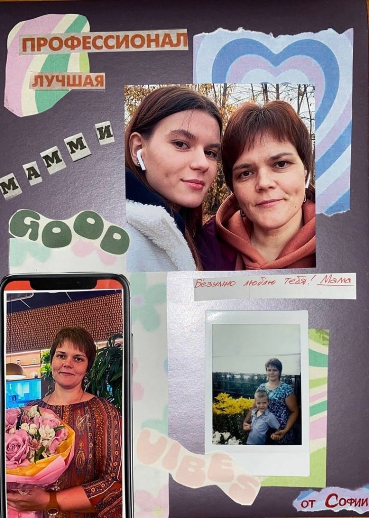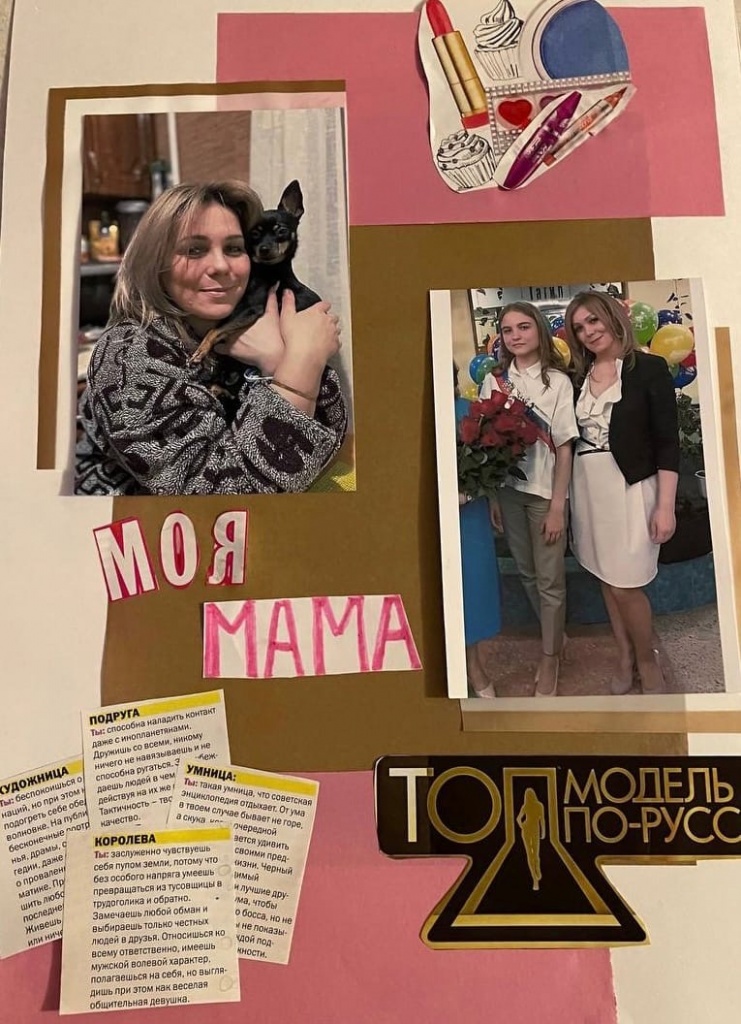 Коллаж – технический прием в искусстве, заключающийся в наклеивании на основу разнородных материалов. Работа показалась студентам очень интересной. Они искали в журналах подходящие изображения и надписи, вырезали и составляли композицию, главной в которой стала фотография мамы. Мама – это та, которая может занять место всех других, но чье место не может занять никто другой. Наши мамы – это самое ценное, что у нас есть, и студенты постарались в своих работах создать образ самого близкого человека.