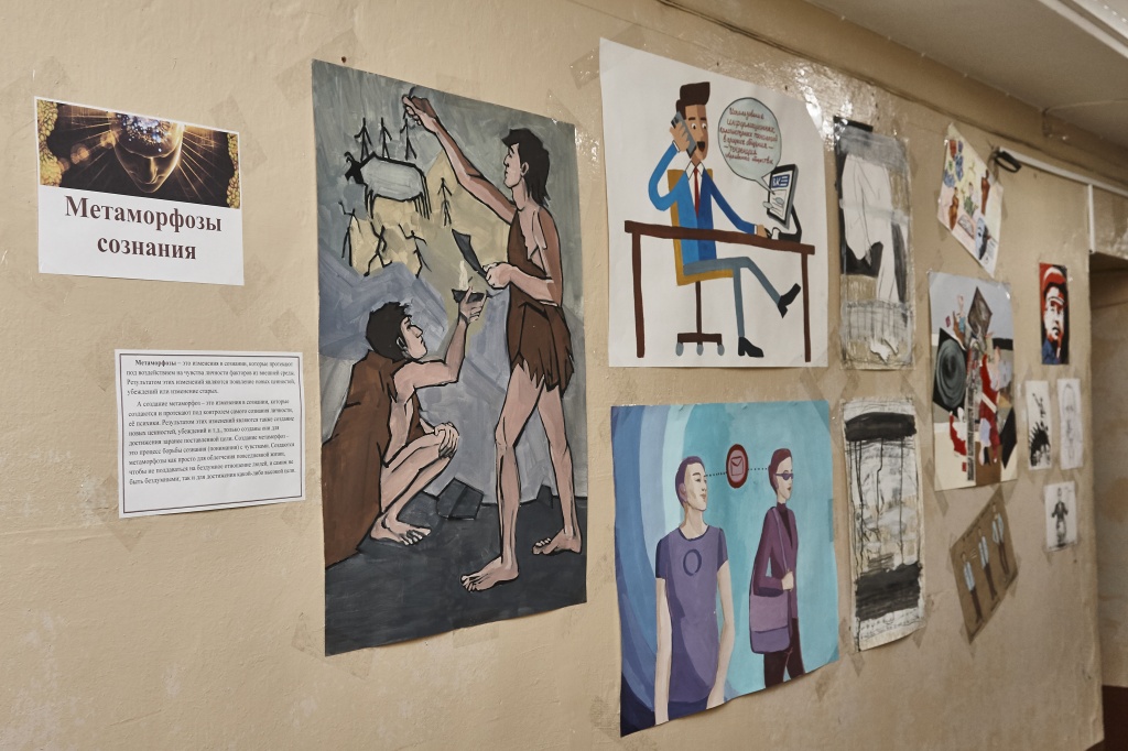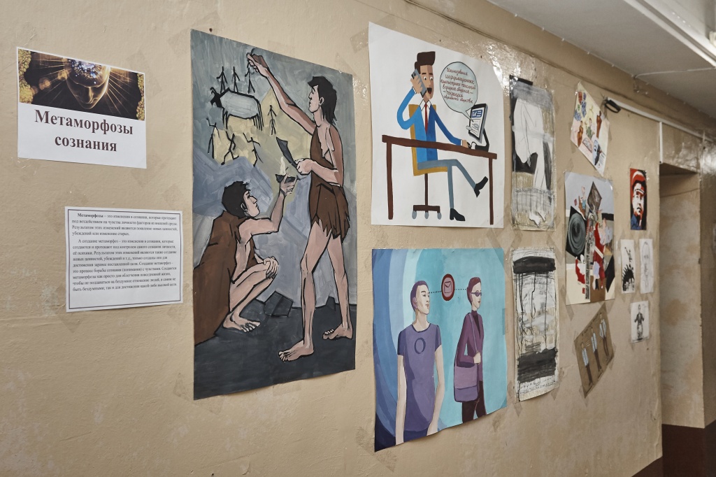 Ко Дню науки студентами третьего курса ФХО были подготовлены работы для выставки под названием «Метаморфозы сознания» (в рамках курса «Социальная психология»). Ребята образно отрефлексировали социальную реальность, отметили в своих работах как негативные процессы нашего социума, так и те традиционные ценности, которые незаслуженно стали забываться.