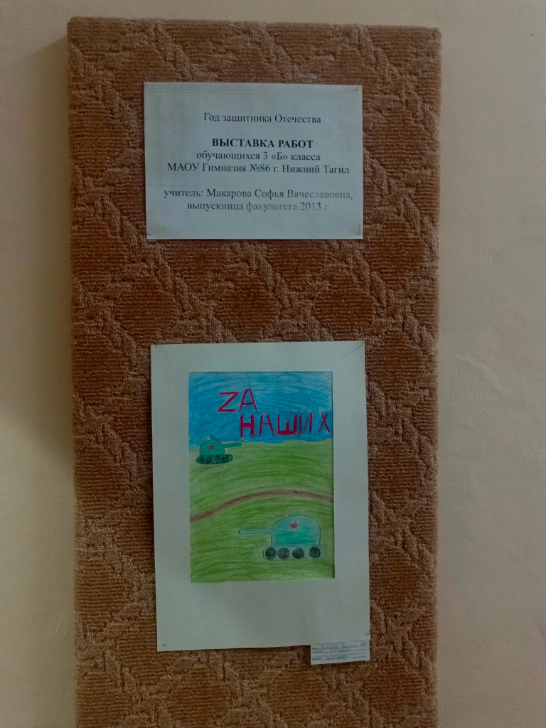 На факультете психолого-педагогического образования открылась тематическая выставка работ обучающихся 3 «Б» класса МАОУ Гимназия № 86, посвященная Дню защитника Отечества. Работы предоставила учитель начальных классов Софья Вячеславовна Макарова – выпускница ФППО 2013 г. Помощь в оформлении выставки оказали студенты группы Нт-308о НДО.