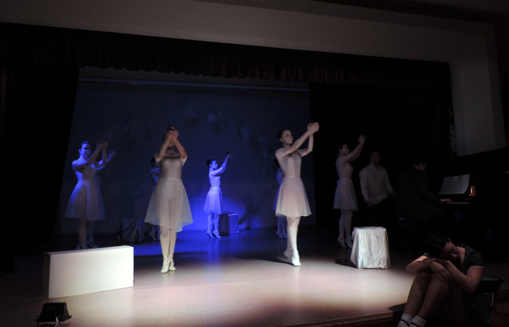 Прологом к открытию выставки стала небольшая хореографическая миниатюра, исполненная студентами первого курса отделения сценических искусств.