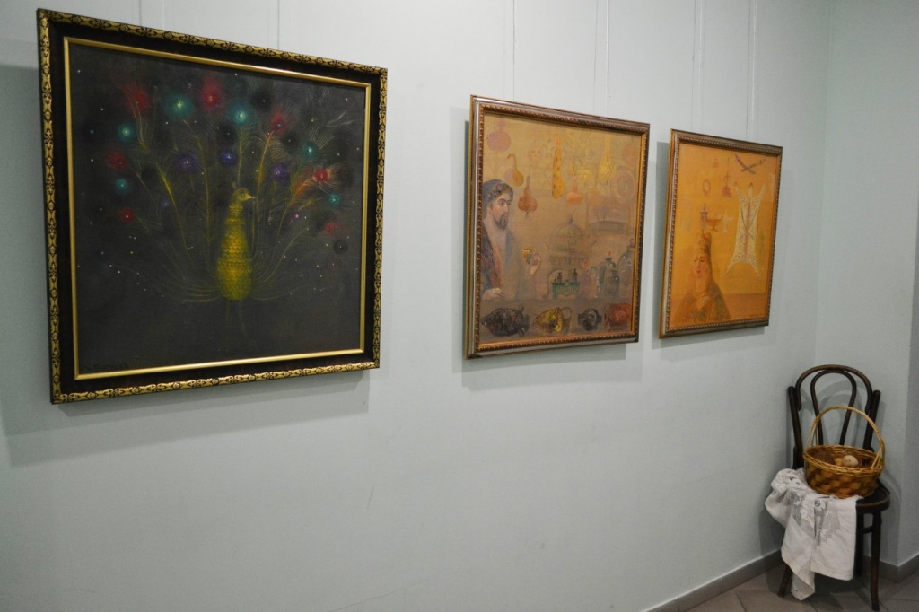 Выставка называется «Под небом голубым…». Под небом голубым, по местам мечты нашей души, где встречи с причудливыми зверями и птицами, где неведомые города, где привычные вещи вдруг станут вещими…