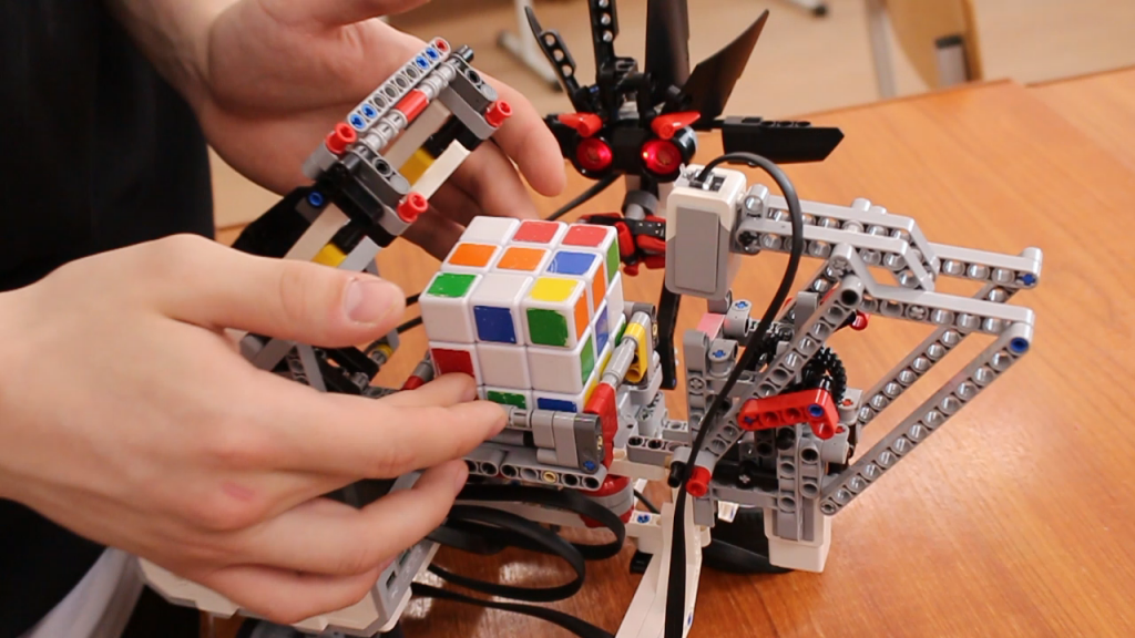 Представленные проекты созданы на базе робототехнических наборов Lego Ev3, LegoNXT, Arduino, а также выполненные с помощью 3D-принтера. Наибольший интерес у всех участников выставки и турнира вызвала модель «Сборщик кубика-рубика», которую представляли учащиеся Данил Лебедь и Иван Власов из МБОУ Лицей. Ребята продемонстрировали, как робот сканирует кубик со всех сторон, затем показывает число необходимых операций и выполняет их для сборки кубика. Кроме того, ребята показали, как робот сам разбирает кубик.