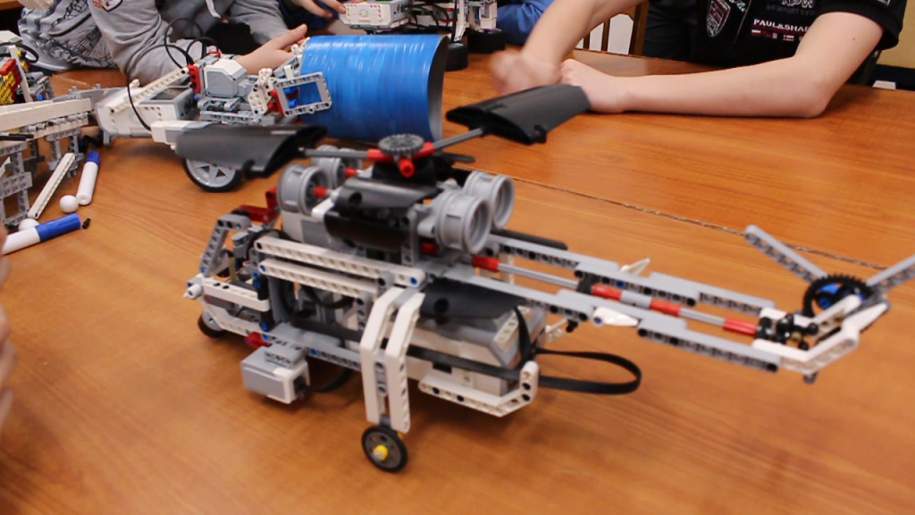 Наши студенты показали известные, но уже усовершенствованные модели «Робот-щенок» (Кристина Лопатина), «Вертолет-спасатель» (Александр Аксенов), «Гитара Ev3» (Евгений Решетников), «Робот-клешня» (Павел Власов).
