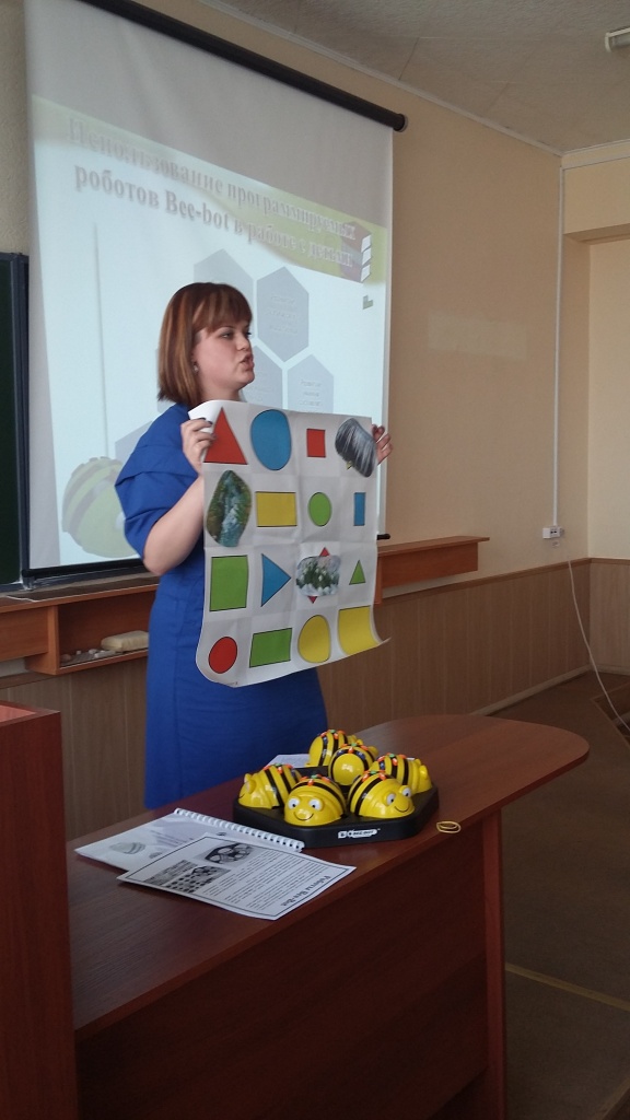 Особый интерес у собравшихся вызвали фрагменты совместно организованных мероприятий. Так, О. В Никифорова, ст. воспитатель МБДОУ № 2 с. Петрокаменское, выступила с сообщением, представленном на семинаре по речевому развитию дошкольников, и продемонстрировала мультфильмы, созданные детьми. Т. А. Мурзина, ст. воспитатель МБДОУ № 24 п. Горноуральский, показала приемы работы с роботизированными игрушками. Участники окружного конкурса методических разработок по математическому развитию дошкольников С. А. Южакова и Т. Л. Скромных, воспитатели МБДОУ детский сад № 1 с. Петрокаменское, представили сенсорные книги и лэпбук для детей раннего возраста, сделанные своими руками. Л. А. Рыбакова, ст. преподаватель кафедры ППО, показала и прокомментировала видеофрагмент мастер-класса, проведенного ею в МБДОУ № 26 п. Горноуральский.