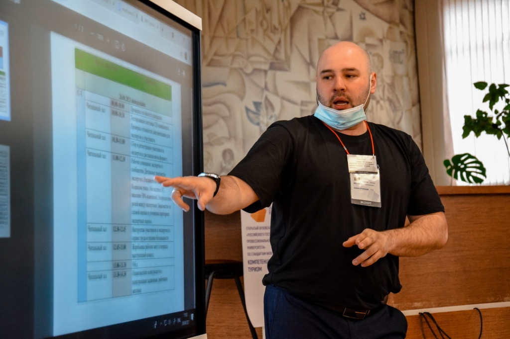 Первый день работы на площадке компетенции «Туризм» Открытого вузовского чемпионата РГППУ среди молодых профессионалов по стандартам WorldSkills проходил в форме встречи. Была регистрация участников соревнования, ознакомление с инструктажем по предстоящей работе и технике безопасности, а также требованиями к работе. Участники познакомились с экспертами. В ходе регистрации благодаря главному эксперту А. В. Неймышеву конкурсанты подробнее познакомились с содержанием предстоящей работы, с графиком и условиями работы, с рабочим местом, получили ценные указания от главного эксперта. Для них были созданы специальные условия для дальнейшей работы ‒ карточки со специальными сигналами.
