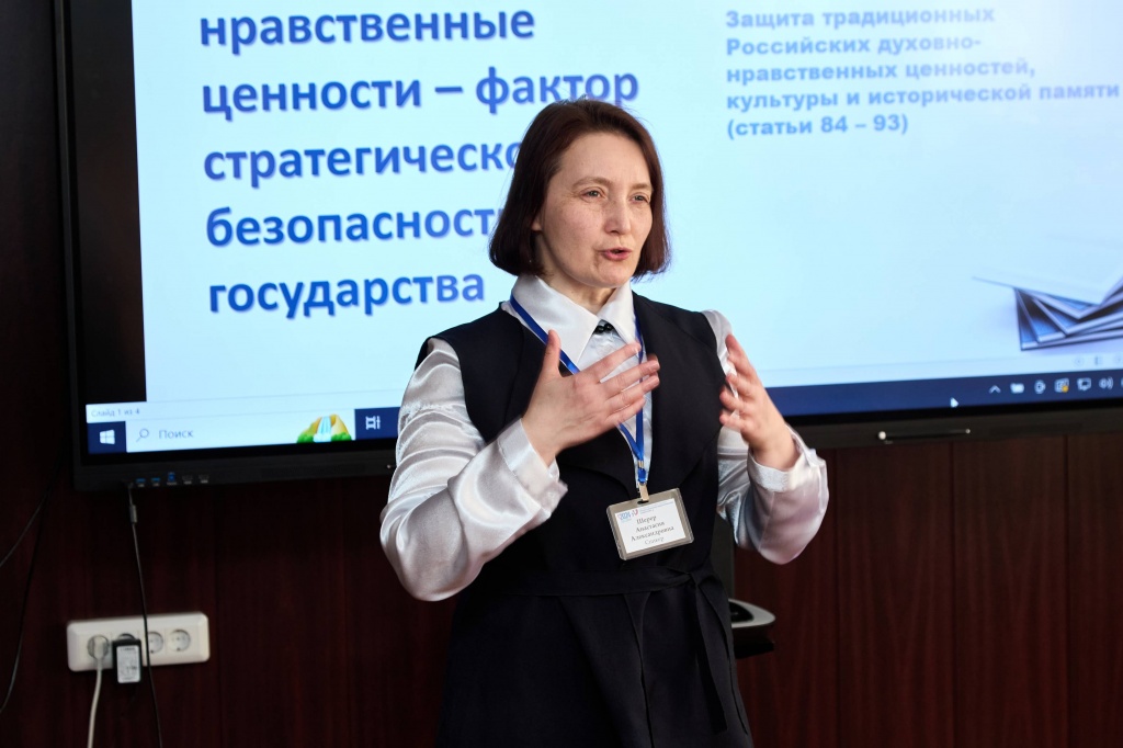 Выступая с приветствием к участникам Форума начальник отдела воспитательной работы и молодежной политики филиала РГППУ в городе Нижнем Тагиле Ирина Алексеевна Губанова отметила важность совместной работы для сохранения традиционных российских духовно-нравственных ценностей, совместного поиска и апробации новых форм решения образовательных и воспитательных задач.