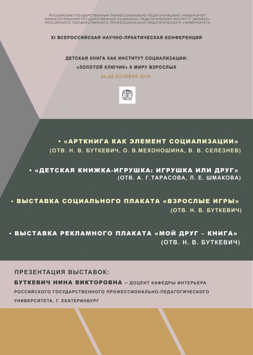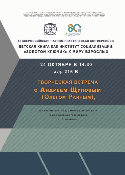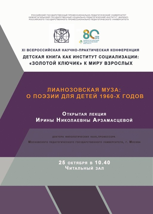 24 и 25 октября 2019 года в Нижнетагильском государственном социально-педагогическом институте состоится XI Всероссийская научно-практическая конференция «Детская книга как институт социализации: «золотой ключик» к миру взрослых», поддержанная Российским фондом фундаментальных исследований.