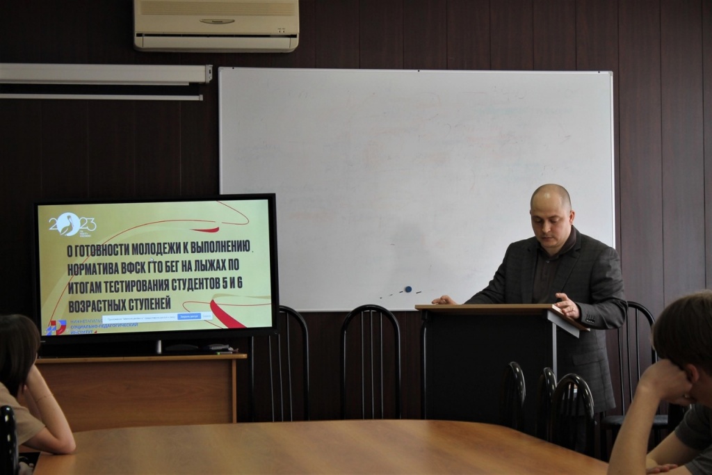 Лев Николаевич Грохотов, старший преподаватель кафедры физической культуры и спорта НТГСПИ представил доклад «О готовности молодежи к выполнению нормативов ВФСК ГТО „Бег на лыжах” по итогам тестирования студентов 5 и 6 ступени», посвященный исследованию готовности студентов к выполнению нормативов ВФСК ГТО.