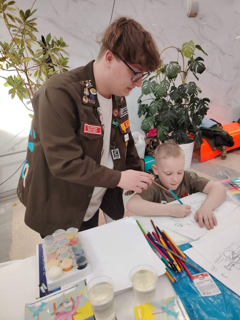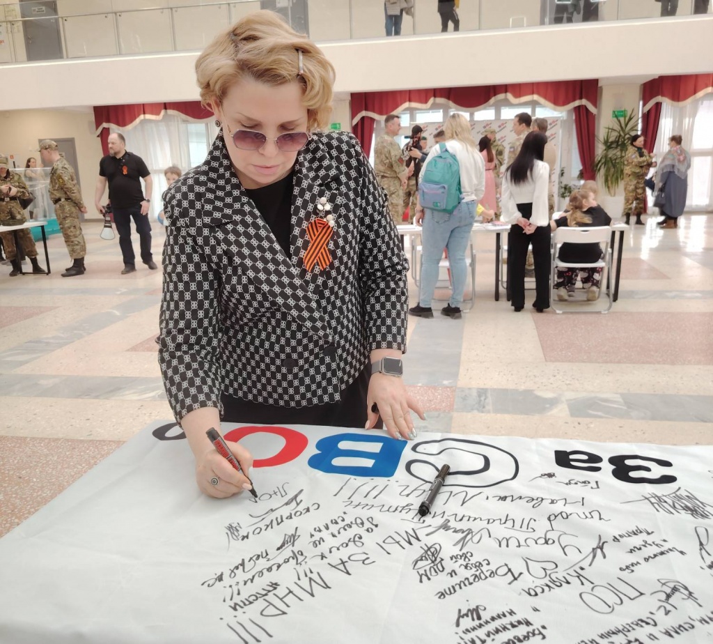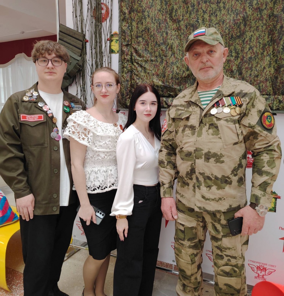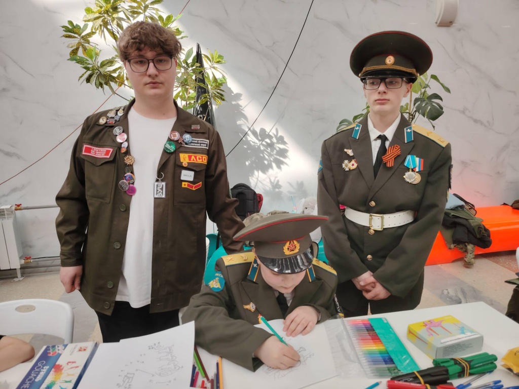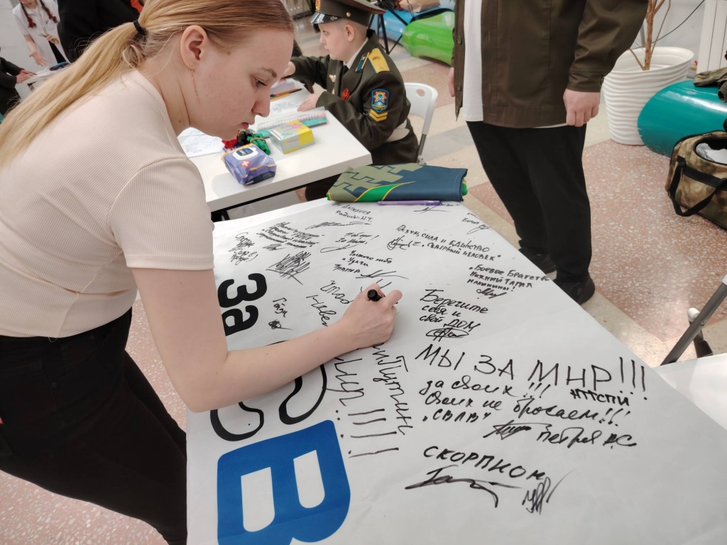 Патриотическая атмосфера форума была поддержана командой городского дворца во главе с Оксаной Васильевной Михневич. Студентам-волонтерам удалось не только провести мастер-классы по изготовлению патриотических сувениров для бойцов СВО, ребята оставили автографы добра на знамени форума, прикоснулись к быту, письмам солдат, смогли написать собственные послания для тех, кто сегодня отстаивает честь Родины на передовой.