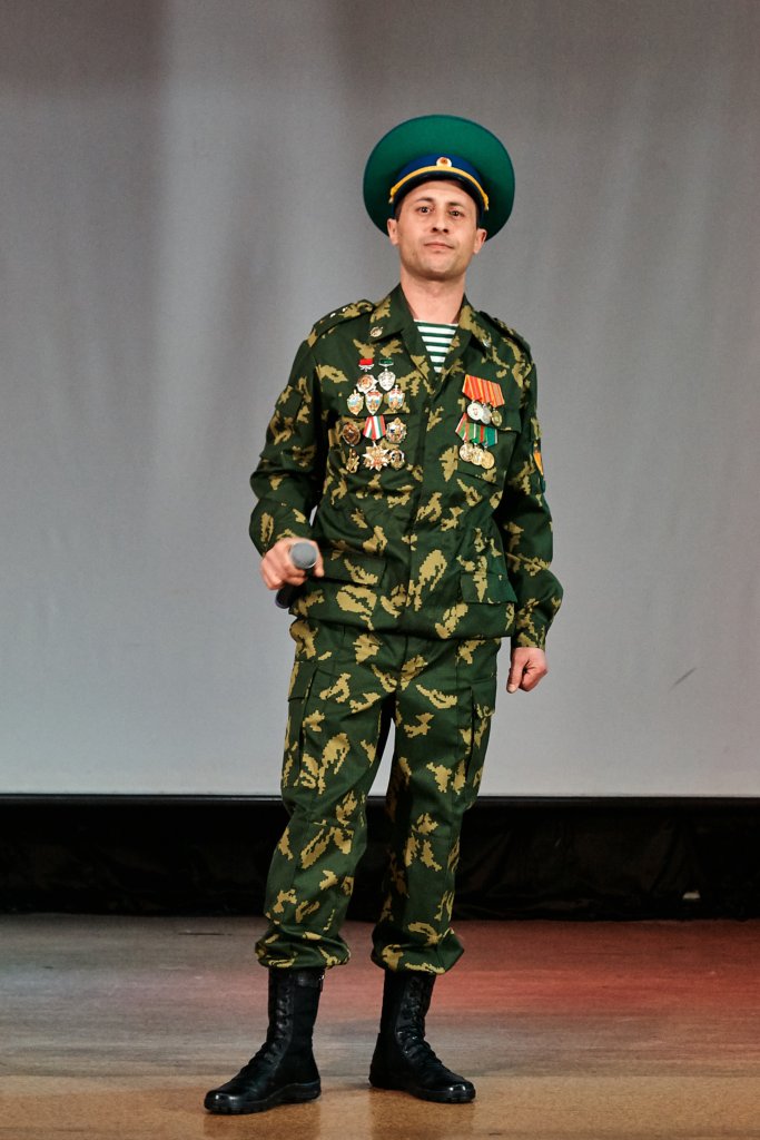 Между творческими номерами взял слово начальник КПП Екатеринбургского аэропорта пограничного управления ФСБ России по Челябинской области Андрей Юрьевич Муска. Пользуясь случаем, полковник напомнил сидящим в зале о необходимости хранить память о тех, кто служил и служит Родине, а также поздравил всех с наступающим праздником.