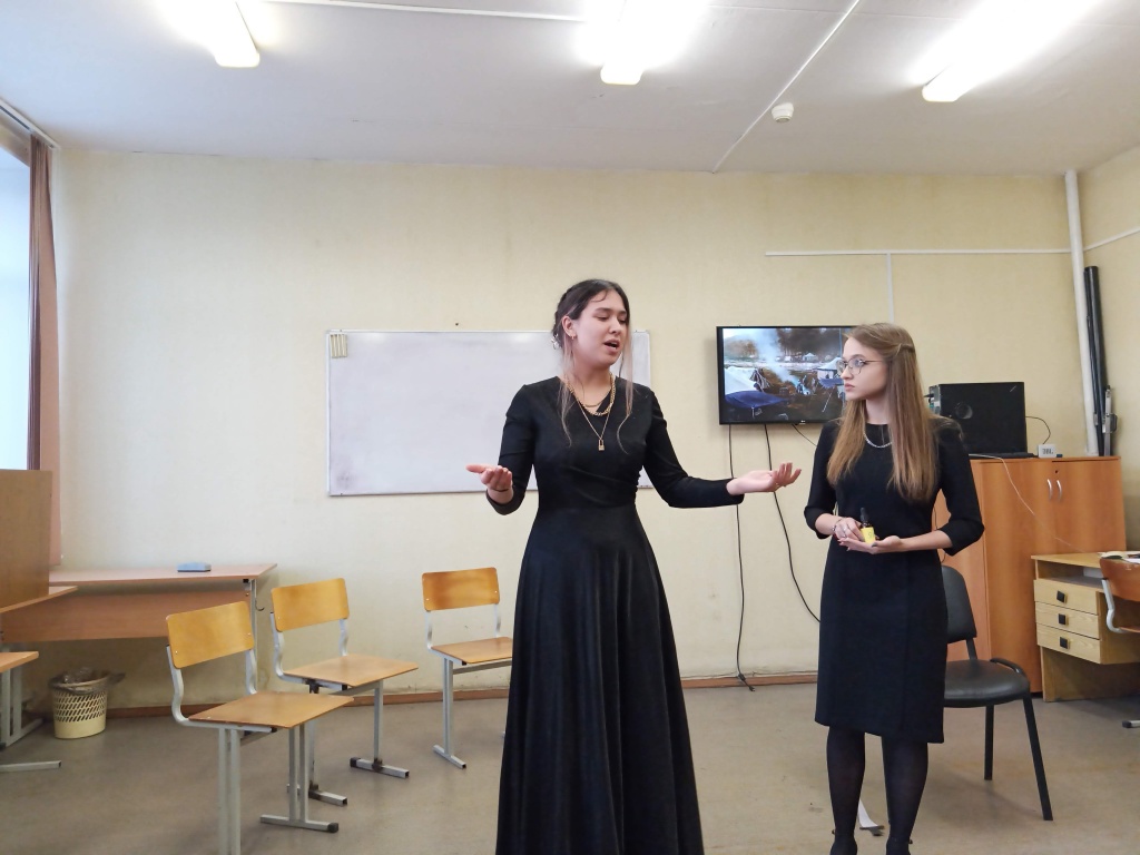 Подобная форма деятельности позволяет учащимся реализовать свой творческий потенциал. Иногда и преподаватель открывает для себя студента с неожиданной стороны. Кроме того, инсценирование предполагает работу с текстом, что способствует закреплению изученного материала. Хочется, чтобы подобная студенческая инициатива продолжалась при изучении русской и зарубежной литературы и на последующих курсах.