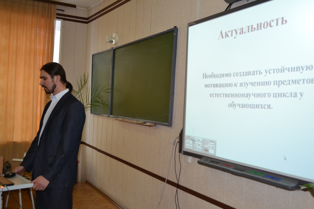 С основным докладом выступил учитель химии и биологии МАОУ СОШ № 3 поселка Черноисточинск Максим Юрьевич Захаров. Выступление учителя вызвало живой интерес у студентов, так как было не только наглядно показано, как можно организовать в школе неделю естественных наук, какие формы работы с детьми можно для этого использовать, но и показано, как с помощью внеучебной, проектной деятельности можно заинтересовать учащихся заниматься биологическими, химическими и экологическими исследованиями, представлены результаты многочисленных ученических проектов. Педагог продемонстрировал важность документирования всех проводимых внеучебных мероприятий в форме фото- и видеоматериалов. Видеома-териалы он широко использует для мотивации школьников к изучению предметов естественнонаучного цикла, а также в качестве рекламного продукта деятельности учителя и учеников. Интересная, неординарная личность Максима Юрьевича никого из присутствующих не оставила равнодушным. Более того, с гордостью отметим, что он выпускник нашего в то время еще химико-биологического факультета.