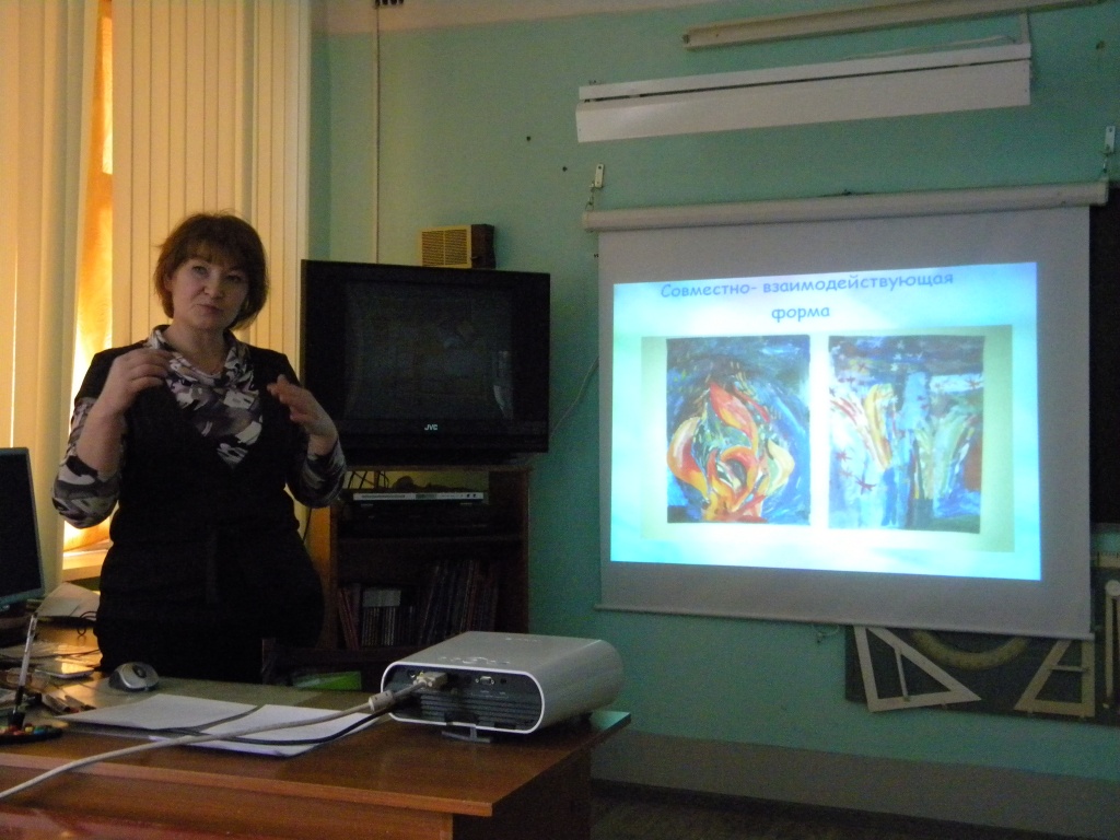 С основным докладом выступил руководитель МРЦ, учитель изобразительного искусства МАОУ СОШ № 3 поселка Черноисточинск Марина Николаевна Шадрина по теме "Воспитательно-образовательные возможности коллективной художественной деятельности в развитии ребенка». Учитель провел открытый урок с учащимися начальной школы по теме «Изразцы», наглядно показав, как можно организовать на уроке коллективную деятельность , какие формы работы с детьми можно для этого использовать, как можно мотивировать учащихся на создание коллективных творческих работ и как можно организовать учебную деятельность направленную на формирование коммуникативной компетенции ребенка.