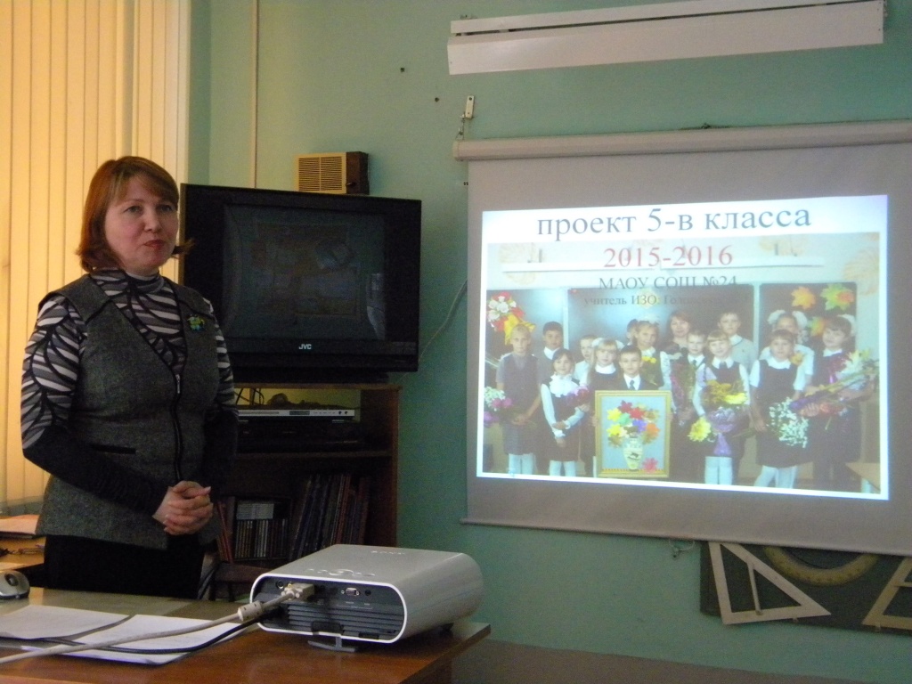 Учитель черчения и изо, МАОУ СОШ № 24 поселка Горноуральский Елена Георгиевна Головских поделилась с педагогами многочисленными интересными разработками внеклассных и внеучебных мероприятий. Ею были продемонстрированы, разнообразные творческие поделки учеников пятых классов выполненных на занятиях с применением технологии «мастер-класс».