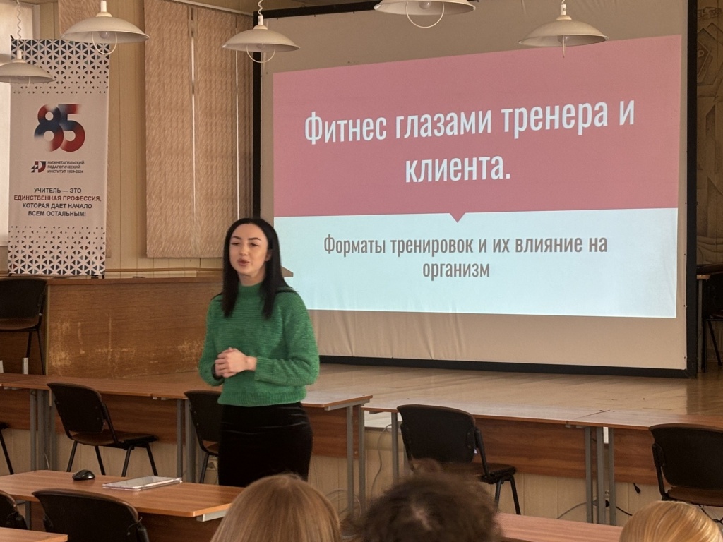 На факультете спорта и безопасности жизнедеятельности состоялось заседание по плану деятельности научно-просветительского клуба «Здоровый стиль жизни студента», который ведет свою работу под руководством Татьяны Николаевны Дейковой и Анны Владимировны Овчинниковой. Тема заседания клуба звучала так: «Фитнес глазами тренера и клиента. Формы фитнес-тренировок и их влияние на организм». Приглашенным спикером выступала Евгения Андреевна Черменева, тренер групповых и персональных тренировок клуба единоборств и фитнеса «Hard Work».