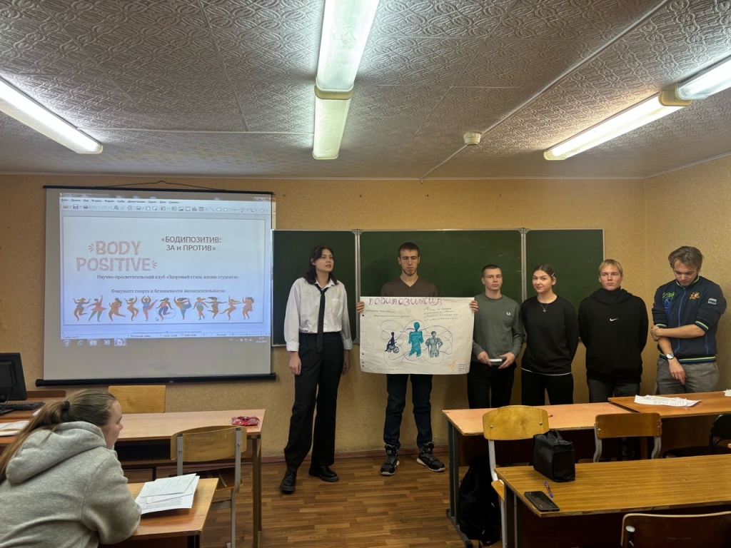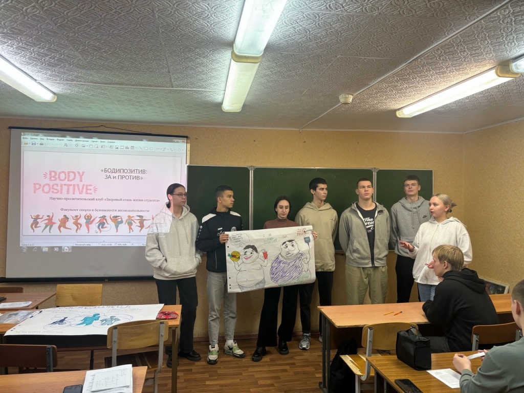 25 декабря на факультете спорта и безопасности жизнедеятельности прошло итоговое в этом году заседание научно-просветительского клуба «Здоровый стиль жизни студента». Тема заседания – «Бодипозитив: за и против». Под руководством преподавателей кафедры БЖФК Татьяны Николаевны Дейковой и Анны Владимировны Овчинниковой для студентов были презентованы вопросы истории возникновения бодипозитива как субкультуры, в том числе в молодежной среде.