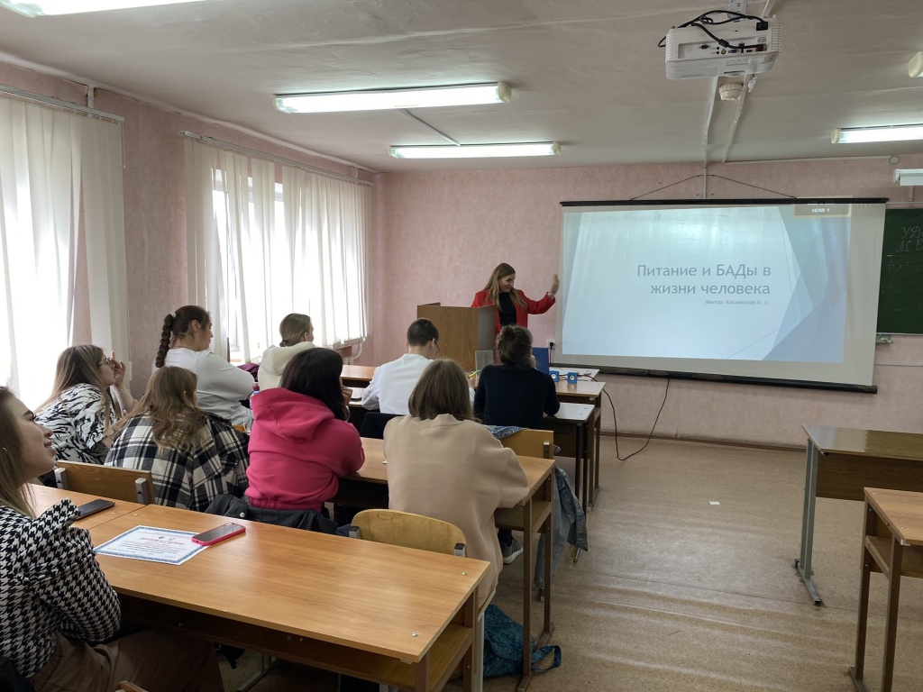 23 мая на факультете спорта и безопасности жизнедеятельности прошло итоговое заседание научно-просветительского клуба «Здоровый стиль жизни студента» под руководством Татьяны Николаевны Дейковой и Анны Владимировны Овчинниковой. Тема – «БАДы и питание в жизни человека». Заседание прошло с участием приглашенного нутрицолога. В интерактивной форме студенты приняли участие в опросе о биологически активных добавках в их жизни. Наглядно были продемонстрированы правила выбора БАДов в условиях современного ассортимента, специфике действия и применении БАДов.