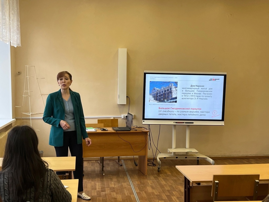 2 апреля в НТГСПИ состоялось четвертое, заключительное занятие по подготовке к Тотальному диктанту. На этот раз его провела доцент кафедры ИЯРФ Инна Леонидовна Чижова. На мероприятии присутствовали студенты 2, 3 и 4 курсов ФФМК. В качестве текста для тренировочного диктанта был прочитан фрагмент из произведения Марины Москвиной «Мой тучерез». Студенты, присутствующие на занятии, дистанционно побывали в известном доме Нирнзее, который находится в Большом Гнездниковском переулке, где прошло детство писательницы. Этот дом до революции был самым высоким в Москве, одним из первых небоскребов. Дом – «тучерез», дом-корабль. Здесь когда-то Юрий Олеша сочинял «Ни дня без строчки», а Мастер впервые встретил Маргариту…