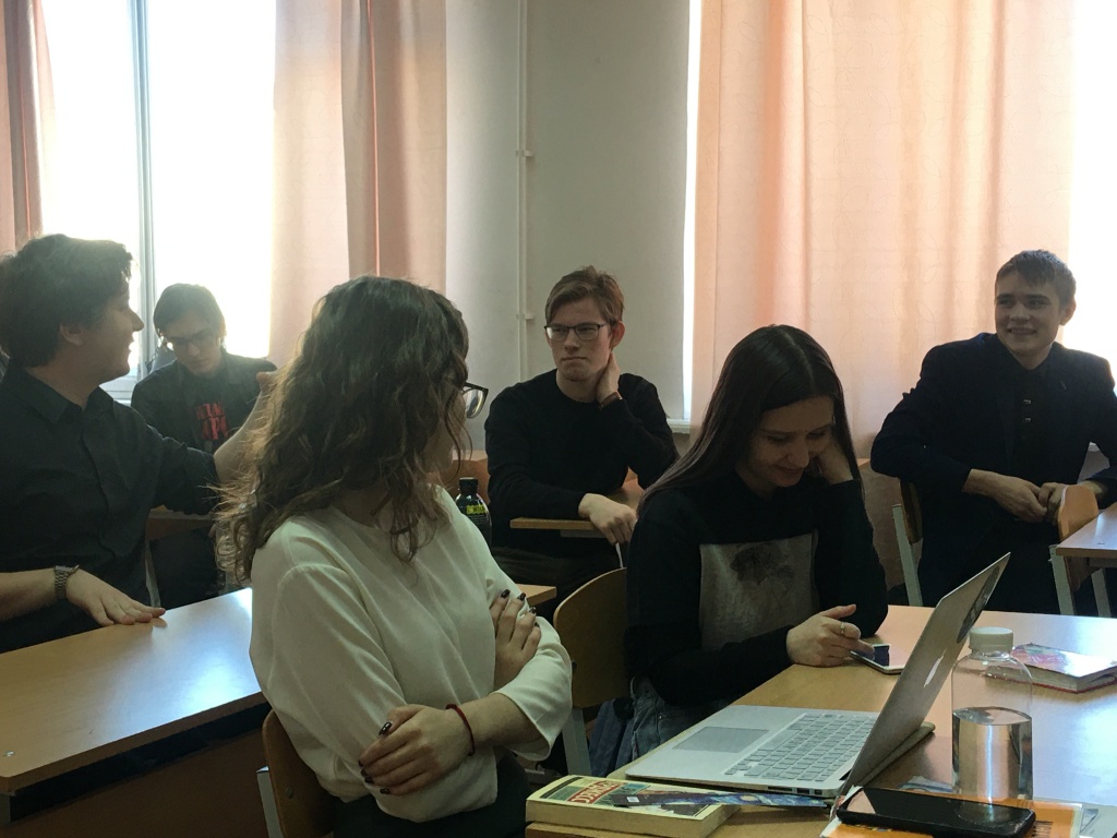 По традиции студенты начали обсуждение с биографии автора, после чего пришли к выводу, что в тексте присутствуют отсылки на его личную жизнь. Основная тема – ультранасилие – художественное осмысление сложностей со здоровьем автора и реальных обстоятельств. Кроме того, важно отметить поездку Бёрджесса в Советский Союз. В романе есть специфический «новояз», построенный на сочетании русского и английского языков.