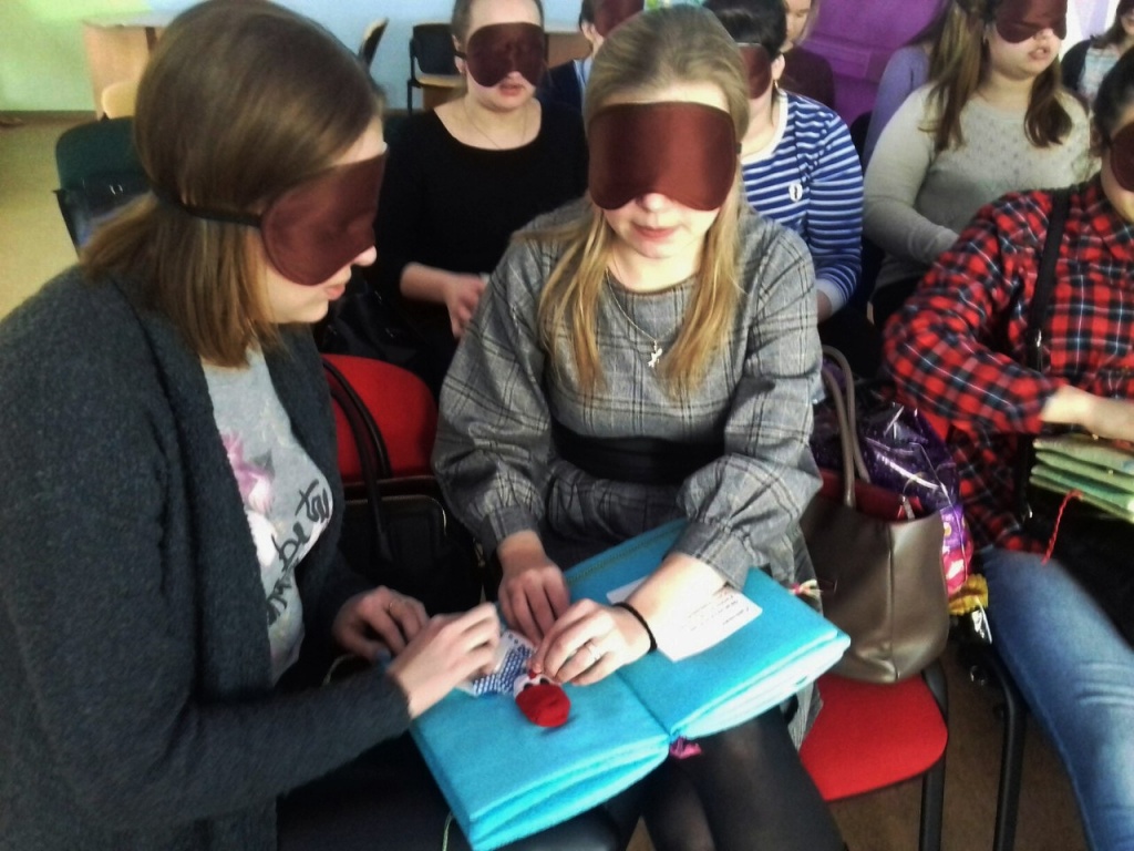 20 марта студенты 4 курса ФППО посетили занятие в городской детской библиотеке. Сотрудник библиотеки О. С. Лобырева рассказала об особенностях общения со слабослышащими и слабовидящими людьми, требованиях к оформлению тактильной книги, особенностях работы по ее созданию. Студентам было предложено самостоятельно поработать с тактильными книгами, на ощупь прочитать названия и определить сюжеты иллюстраций.