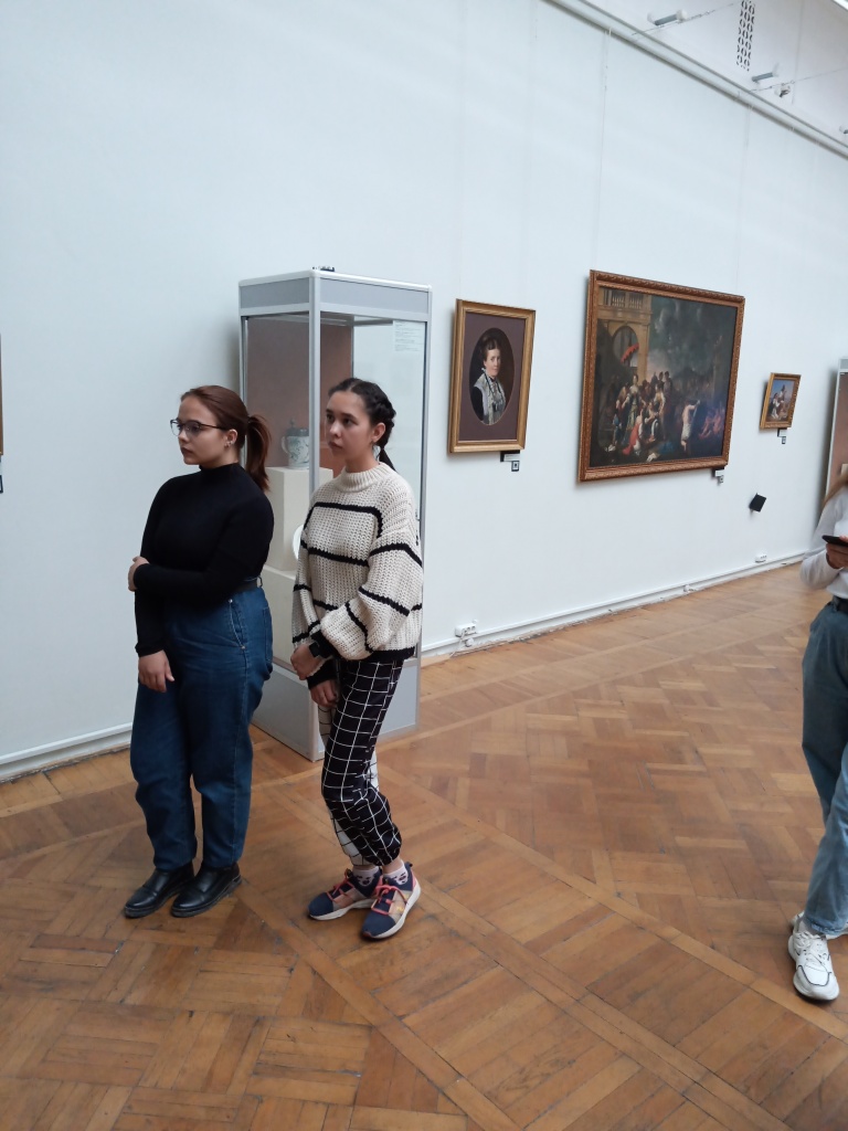 Студентов познакомили и с основной экспозицией музея – залом русского искусства. Безусловно, не оставили без внимания и главную достопримечательность нашей картинной галереи – «Тагильскую Мадонну», картину, которая, возможно, выполнена Рафаэлем или учеником его школы. В этом же зале экскурсанты познакомились и с другими произведениями итальянских художников эпохи Возрождения. Таким образом, студенты могли увидеть шедевры изобразительного искусства эпохи Ренессанса, продолжить знакомство с культурой этого исторического периода. Это тем более важно, потому что в течение этого семестра им предстоит изучение литературы эпохи Возрождения.